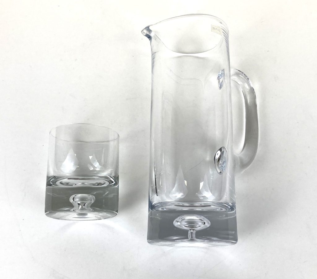 Krosno Bonny. Krosno is een van de bekendste mondgeblazen (kristal)glasfabrieken van Polen. Het staat bekend om zijn bijzondere glas objecten die het met de hand vervaardigd en met de mond nog blaast. De meest zuivere en fijne grondstoffen als zand, soda en water worden gebruikt om de hoge kwaliteit in sterkte en helderheid te kunnen waarborgen. Krosno Bonny kenmerkt zich door de uitgesproken grote mondgeblazen bel onderin de voet van het item.