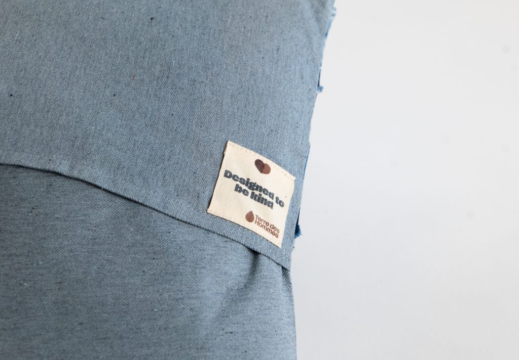 Deze kussenhoesjes zijn het resultaat van een samenwerking tussen Spinning Jenny en Remake Society en Terre des Hommes. Het gerecyclede draad van Spinning Jenny wordt omgezet in stoffen die de Remake Society verwerkt tot stijlvolle kussenhoesjes.