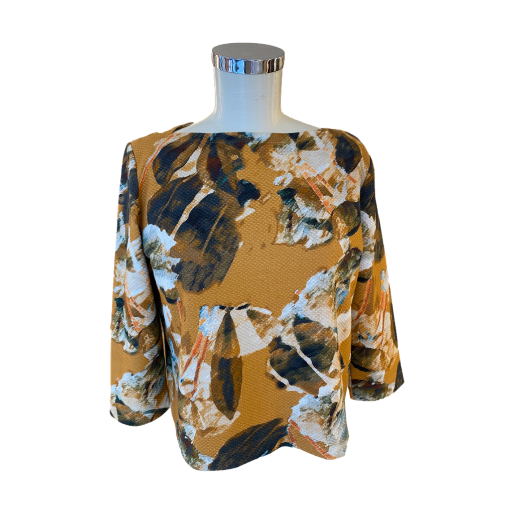 Kyra – Top – Cognac/Bruin/Beige/Blauw Dessin – Maat S/36