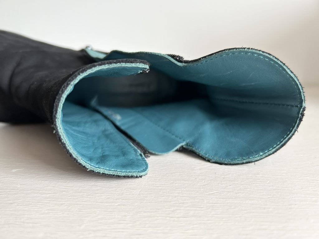 De laarsjes hebben een opvallende turquoise zacht leren binnenkant.