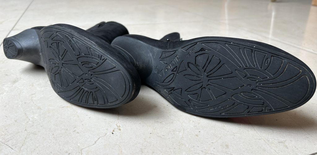 Arche laarsjes met een 4 cm hoog hakje en een latex zool. Zwart met een turquoise kleurige binnenkant.