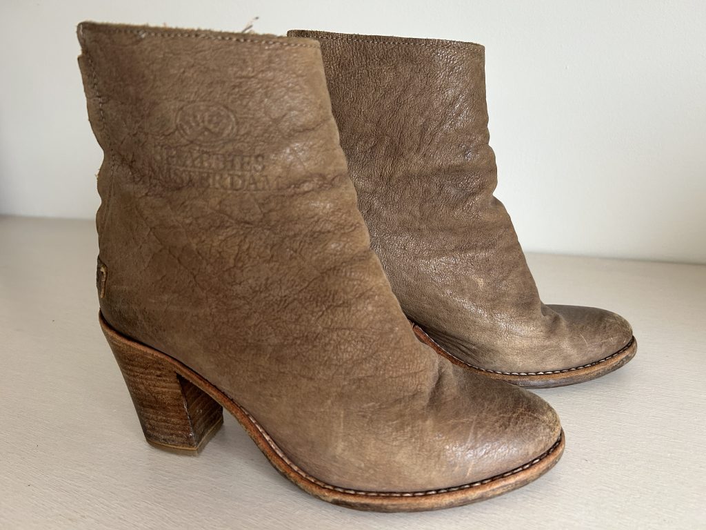 Shabbies korte laarsjes van naturel bruin leer. Maat 37.