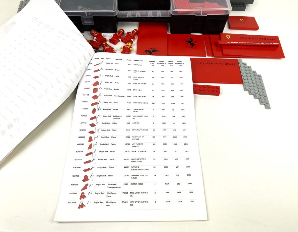 Incomplete set Lego Racers 8654 Scuderia Ferrari truck. Met handleiding en bijgewerkte onderdelenlijst (ca. 51 ontbrekende onderdeeltjes). Voor leeftijd 8+.