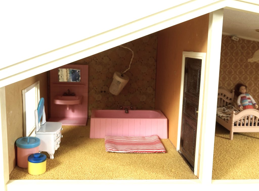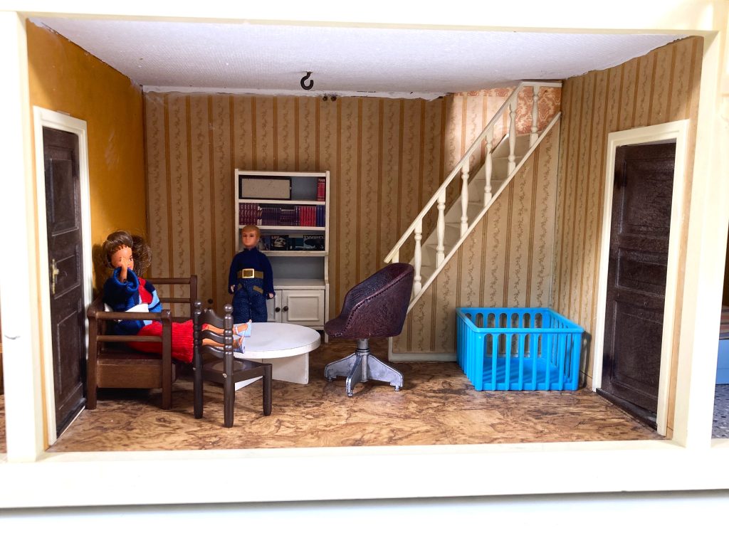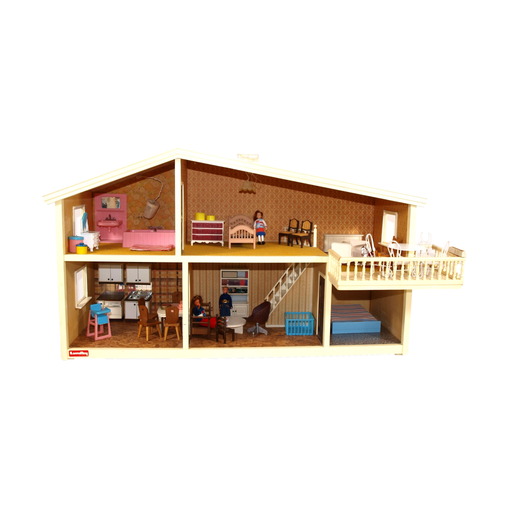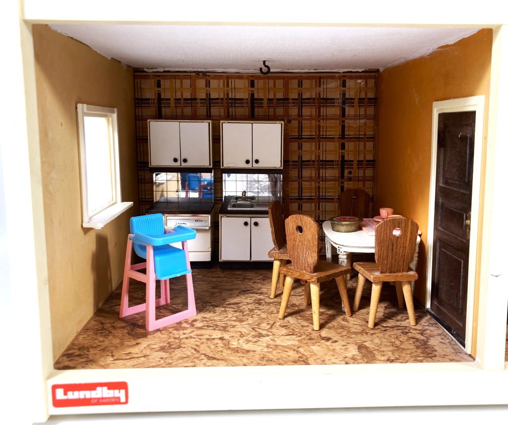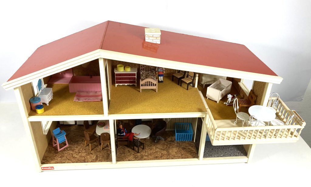 LUNDBY, poppenhuis, jaren 1960. Een charmant speelgoedhuis met meerdere kamers, een trap en meubeltjes e.d.