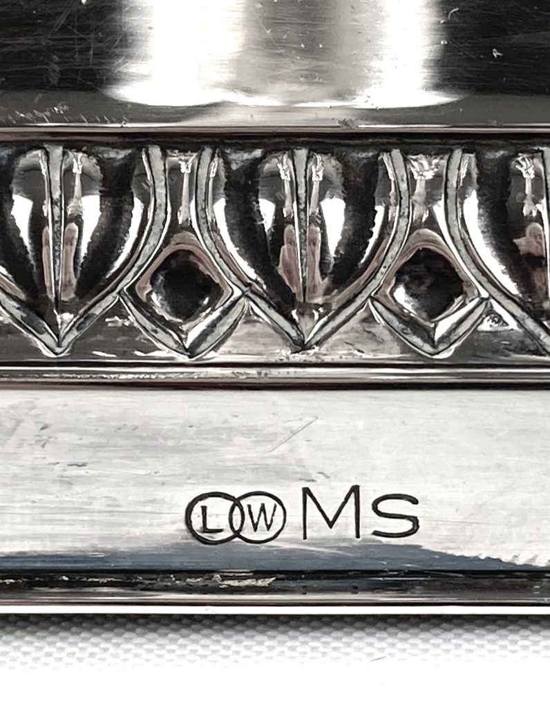 Deze prachtige, zwaar verzilverde 3-lichts kandelaar is gemaakt door Lutz & Weiss in Pforzheim, Duitsland, rond 1975. Hij is gemerkt met LW Ms.