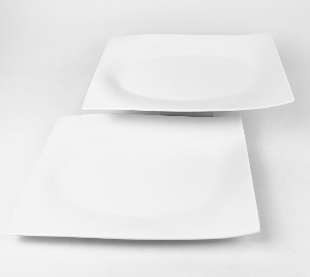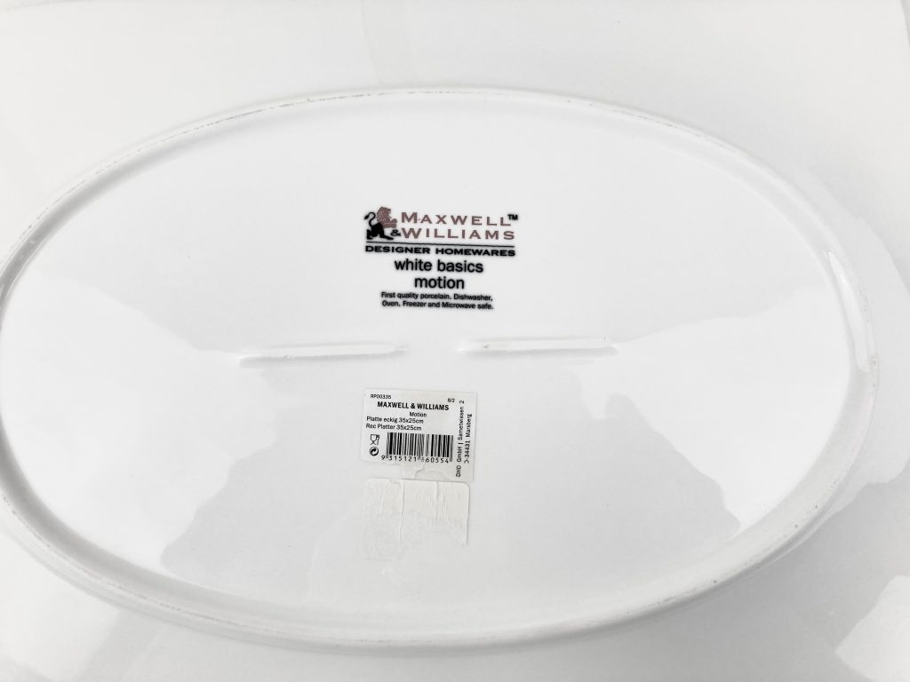 2 Witte porseleinen serveerborden van Maxwell en Williams. Model: Motion. Afmeting: 25×35 cm.