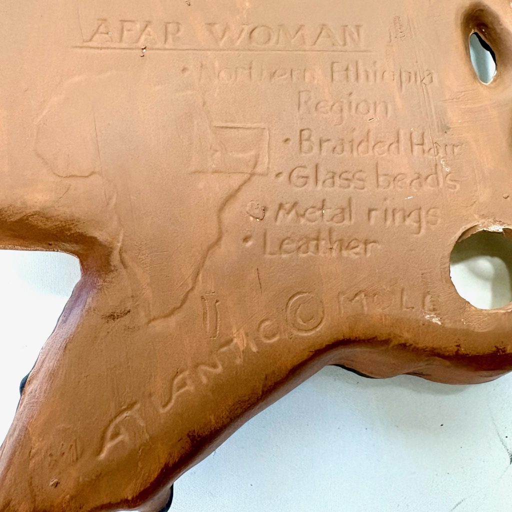 Muurdecoratie van keramiek van een vrouw Ethiopische Afar regio.