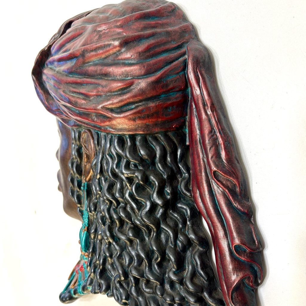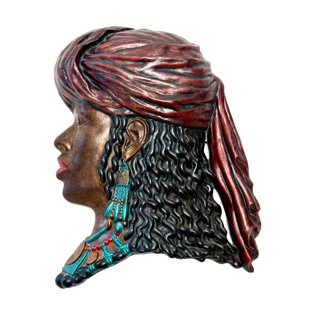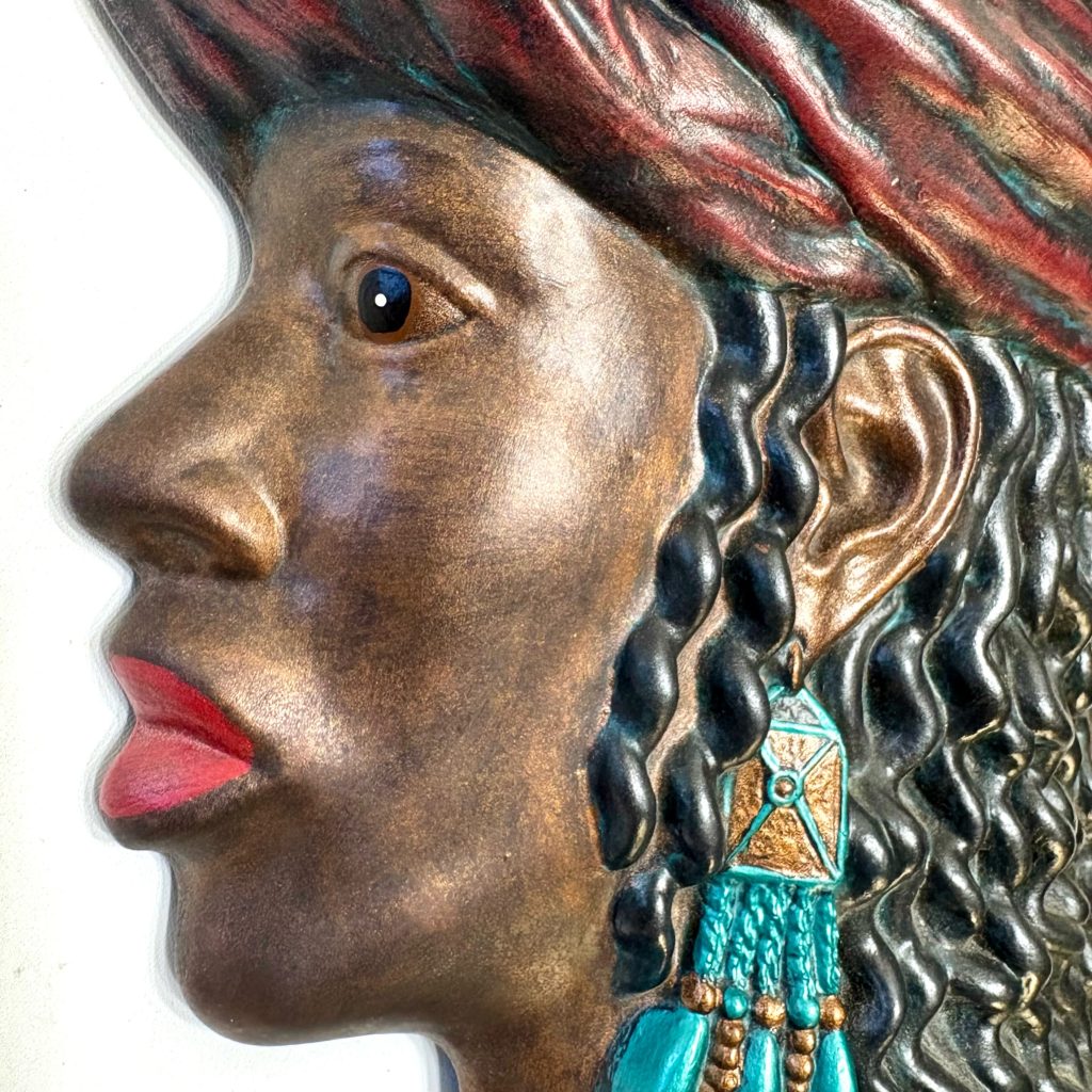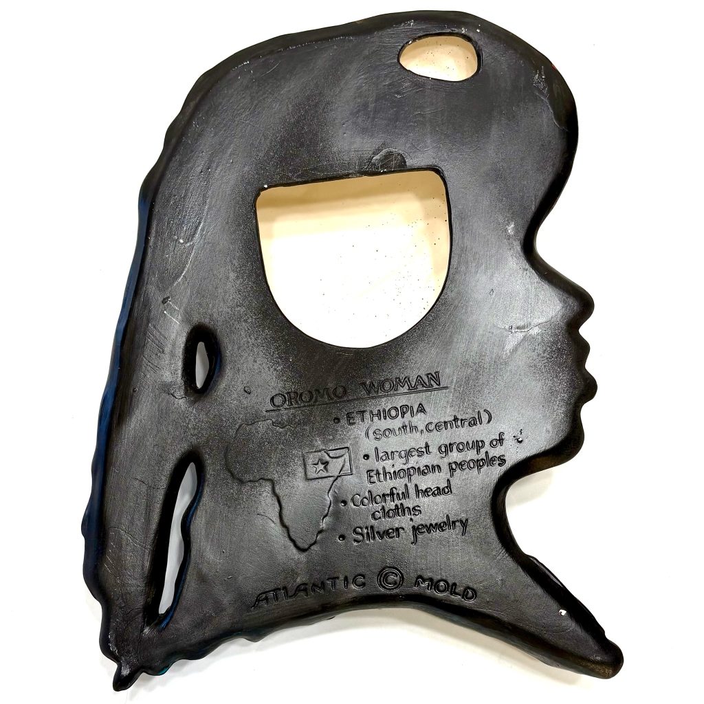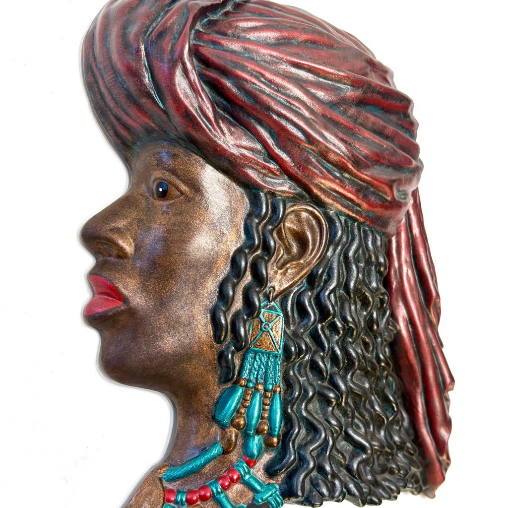 Muurdecoratie van keramiek van een Oromo vrouw.