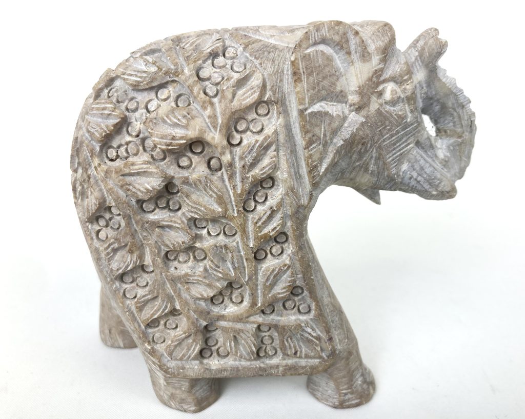 Beeldje van een olifant, gemaakt van speksteen.