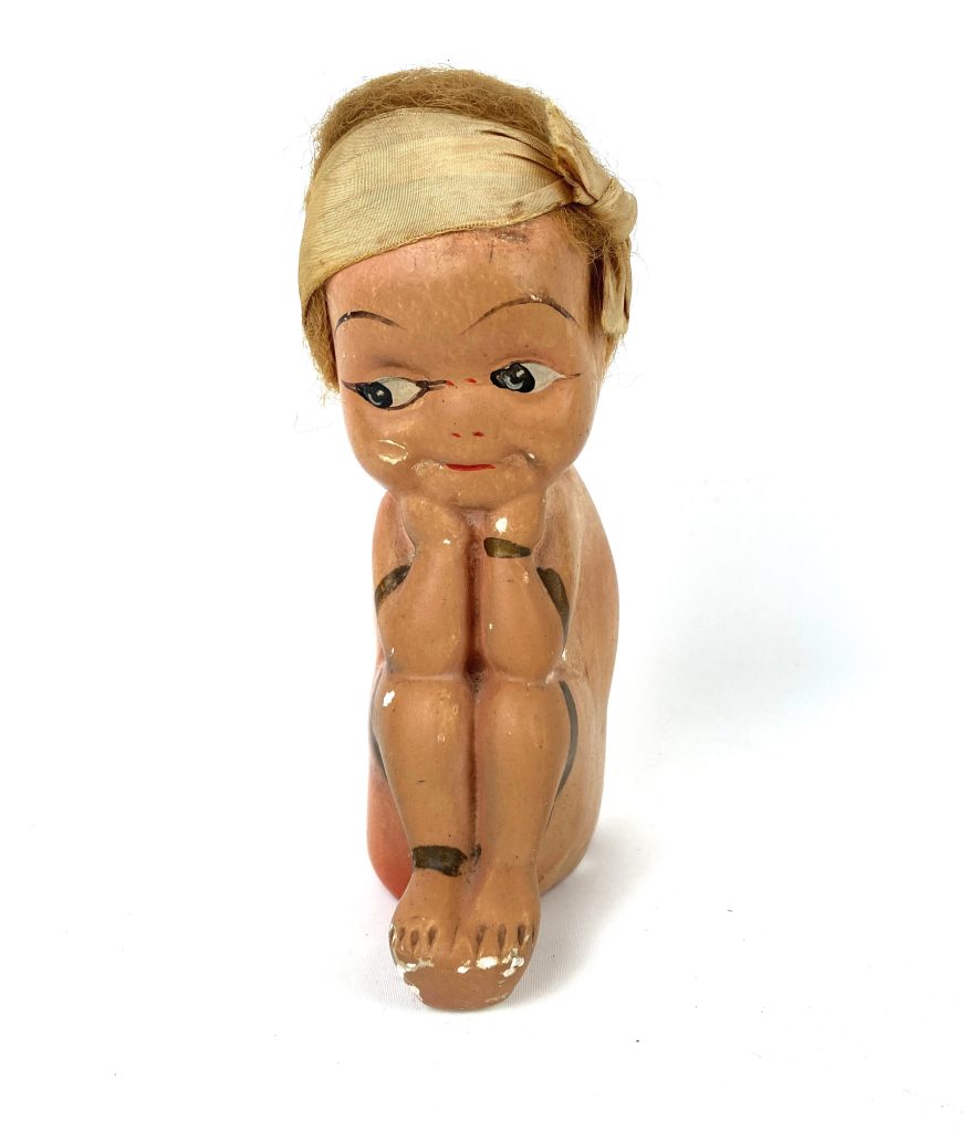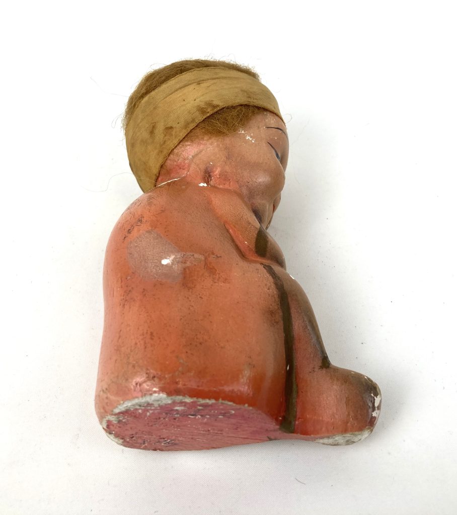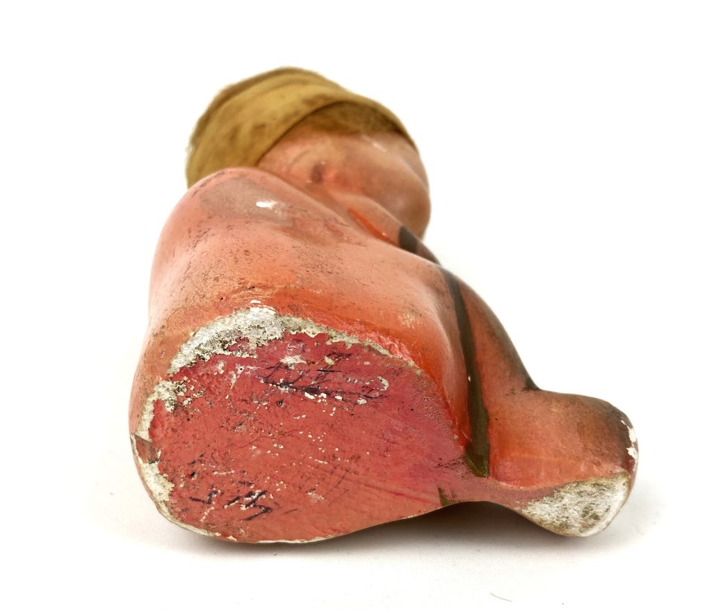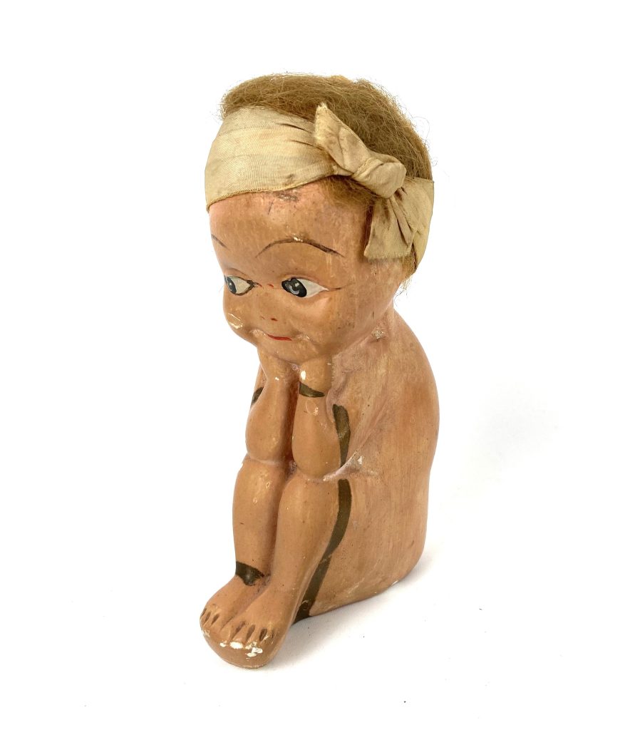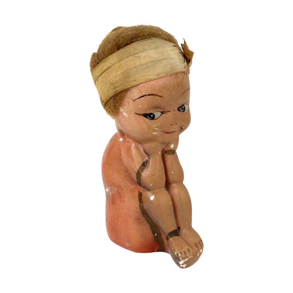 Oude spaarpot – Zittend kindje – Gips – Bruin