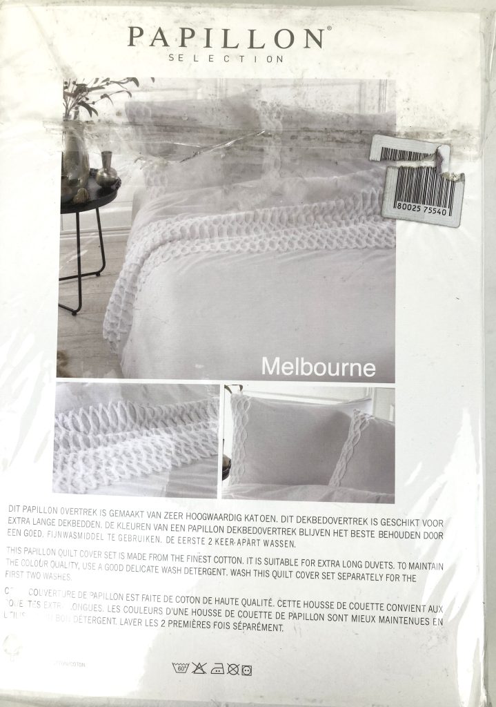 Nieuw in verpakking. 1-Persoons dekbedovertrek met sloop van Papillon Selection. Model Melbourne. 100% Katoen. Afmeting: 140×200/220. Geschikt voor extra lange bedden. Wasbaar op 60 graden. Nieuwprijs: 49,95.