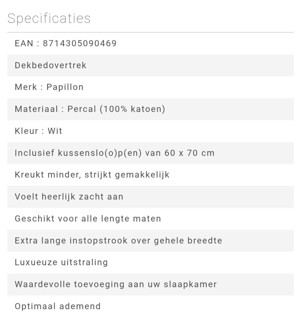 Papillon Selection – 1-persoons dekbedovertrek set – Wit – Nieuw