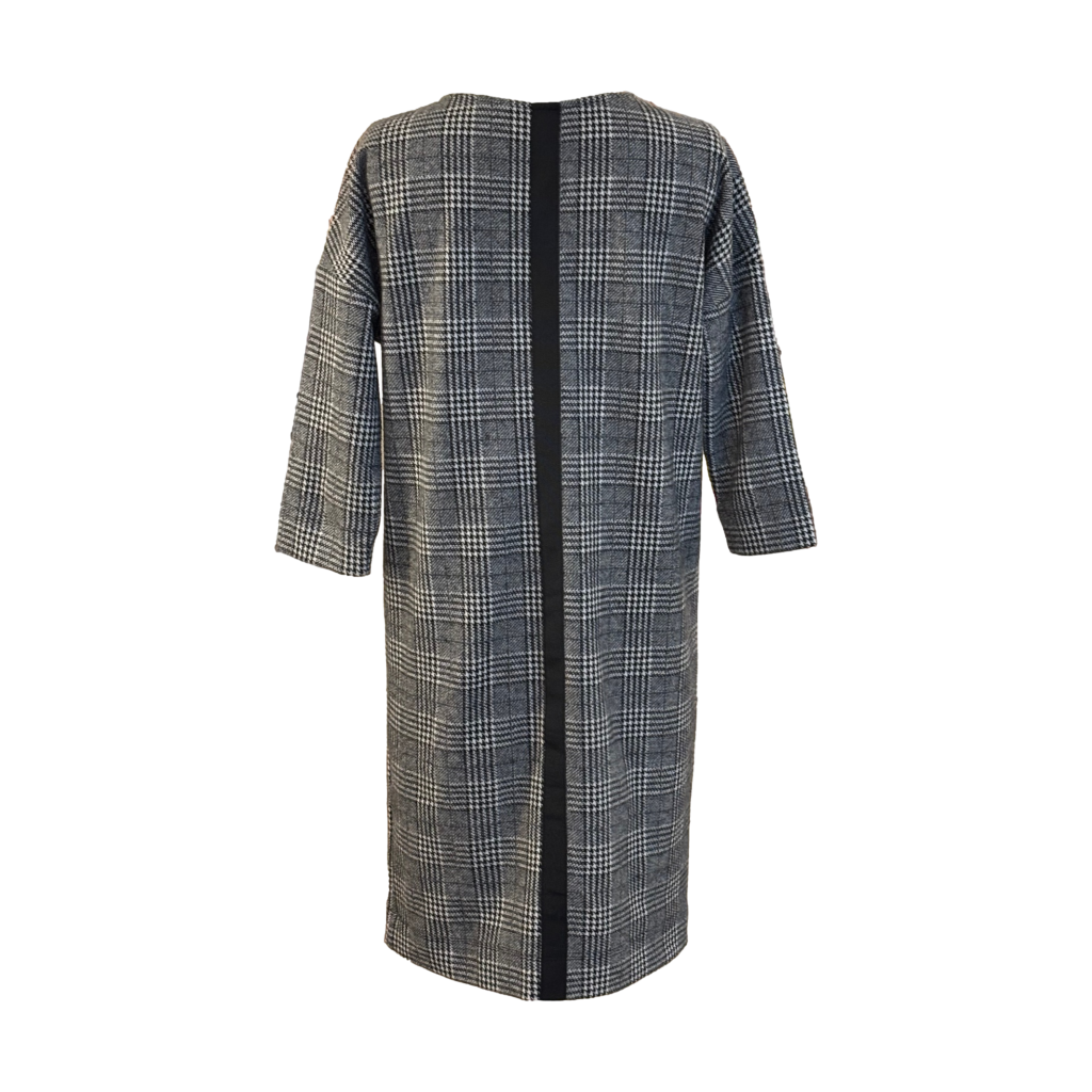 Comfortabele recht vallende geruite jurk met driekwart mouwen.