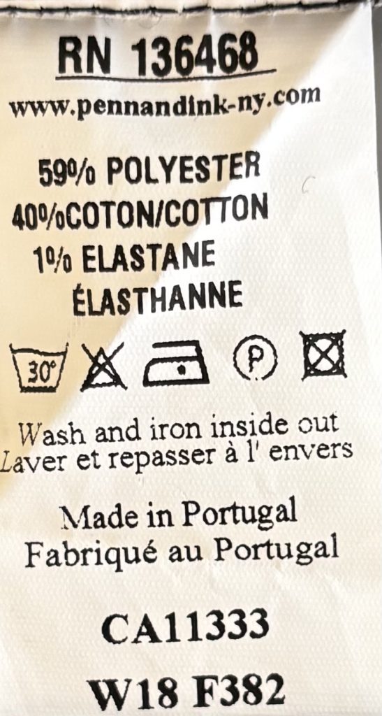 - 59 % polyester, 40 % katoen, 1 % elasthan