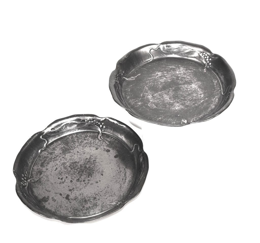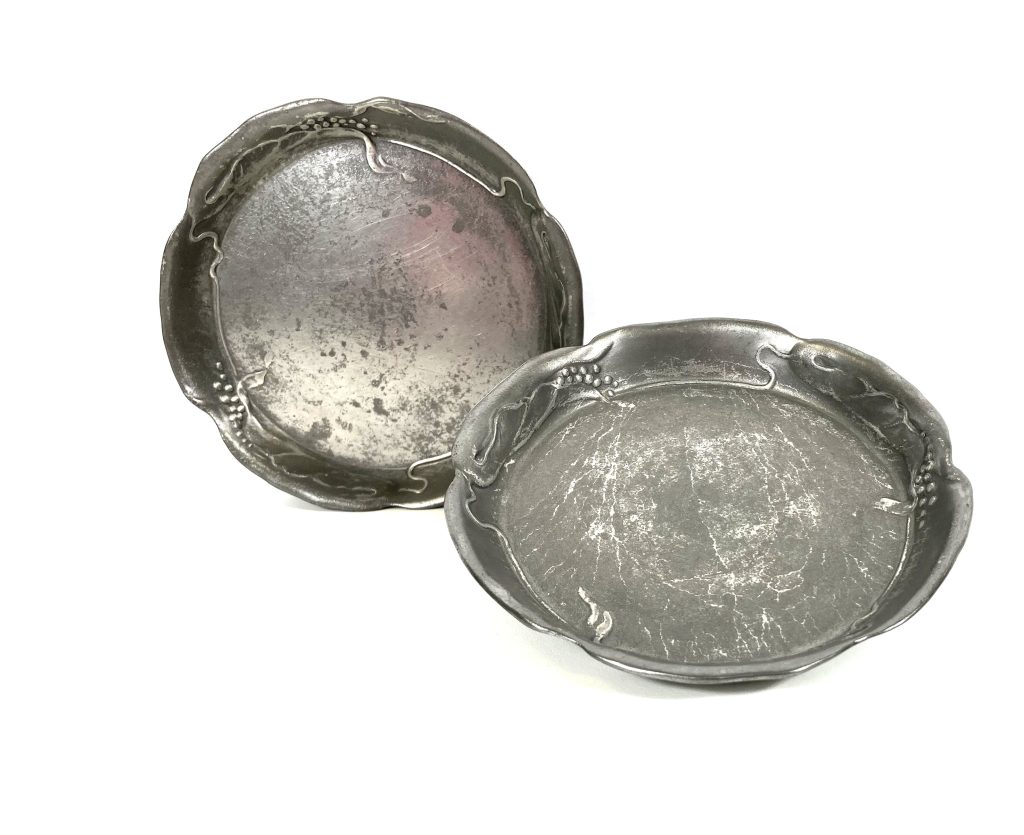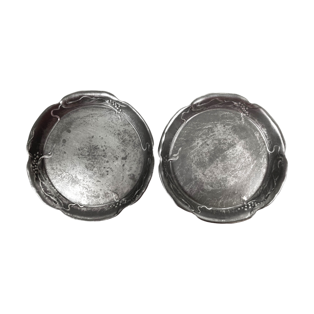Twee Pewter Jugendstil (ca. 1900) tinnen flessen onderzetters.