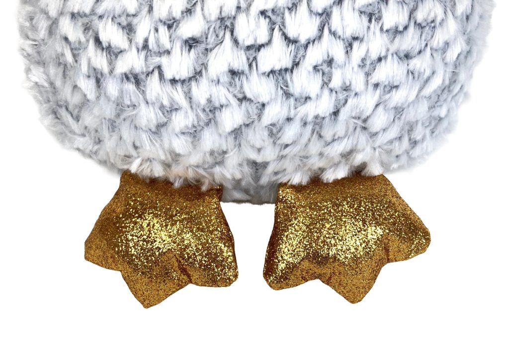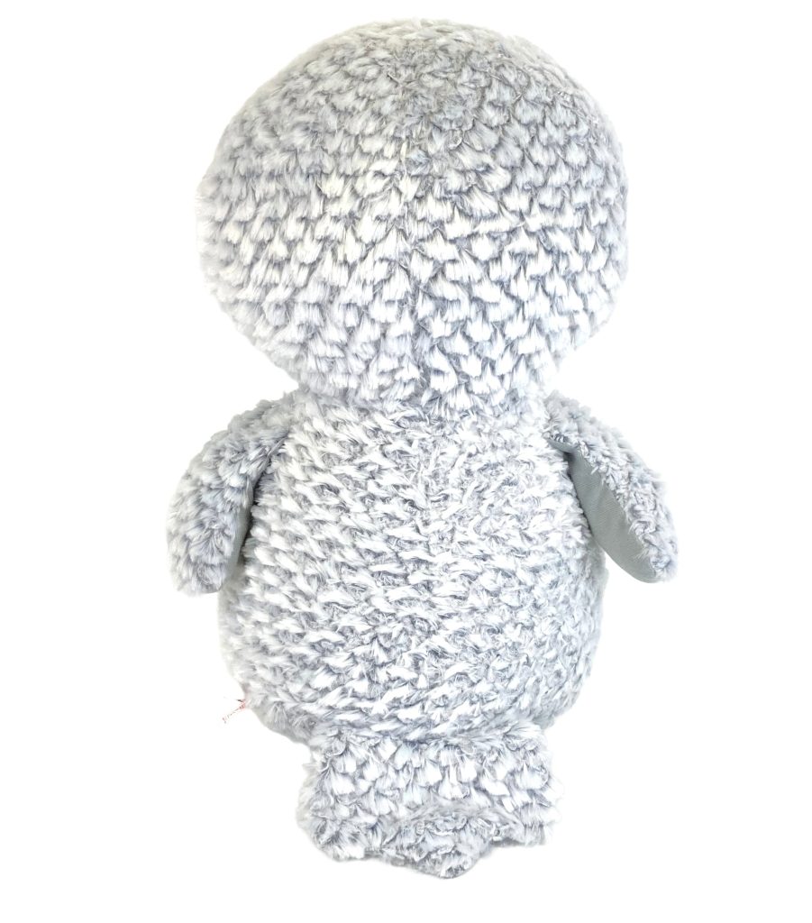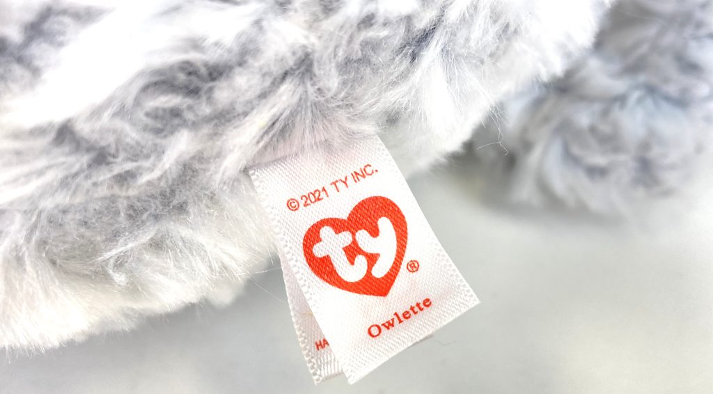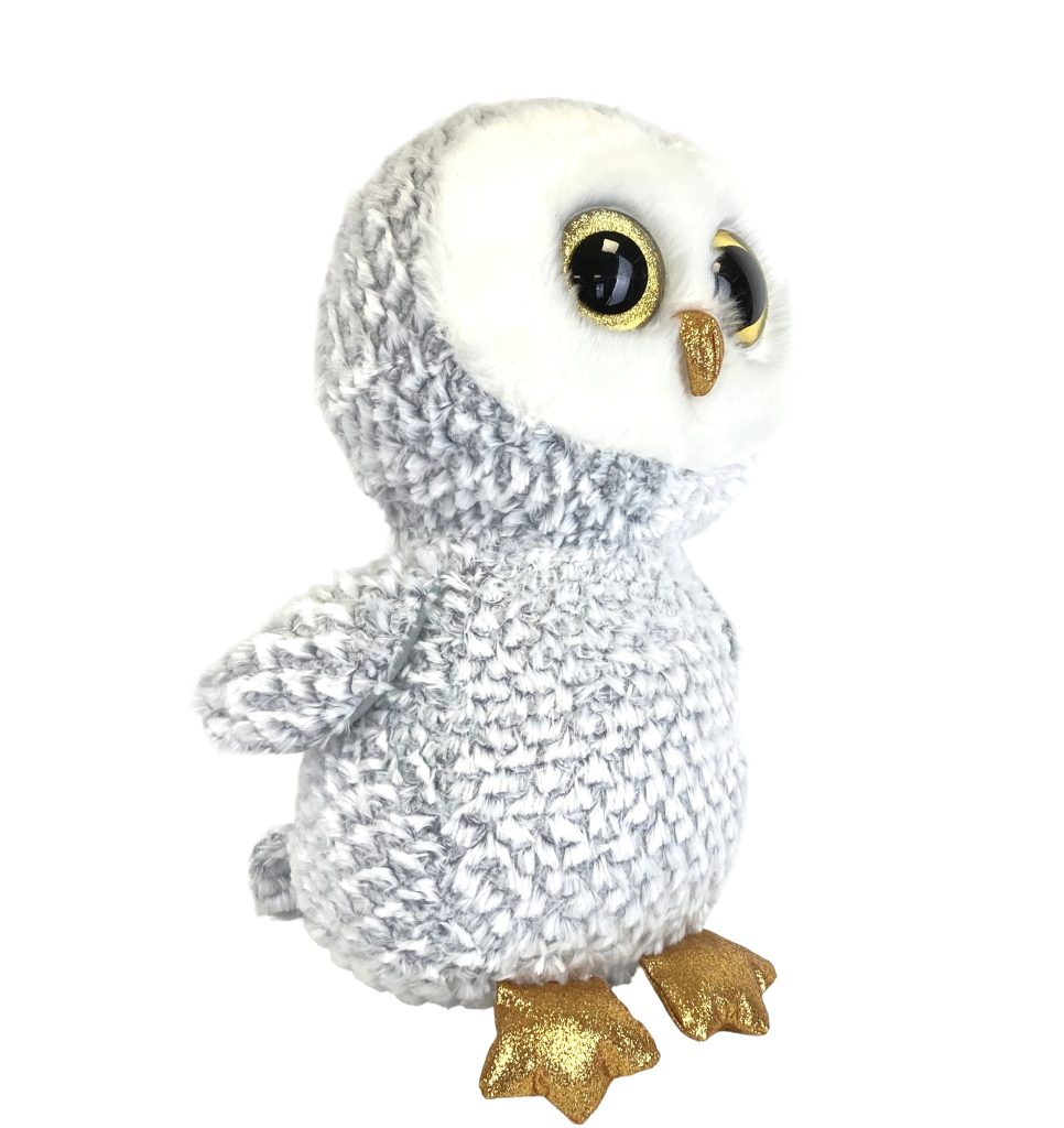 Pluchen knuffel uil Owlette van Ty Beanie Boo. Formaat XL (42 cm). In licht grijs met wit en gouden oogjes en pootjes. Nieuw zonder prijskaartje.