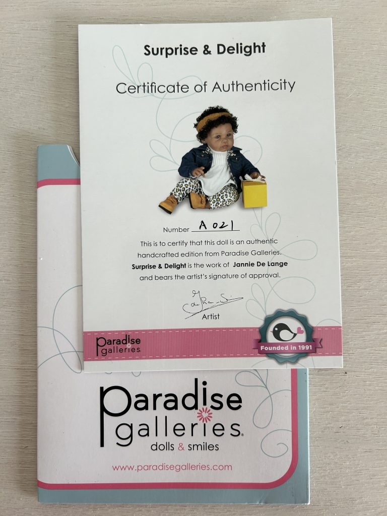 Levensechte pop genaamd “Surprise & Delight” van het merk Paradise Galleries.