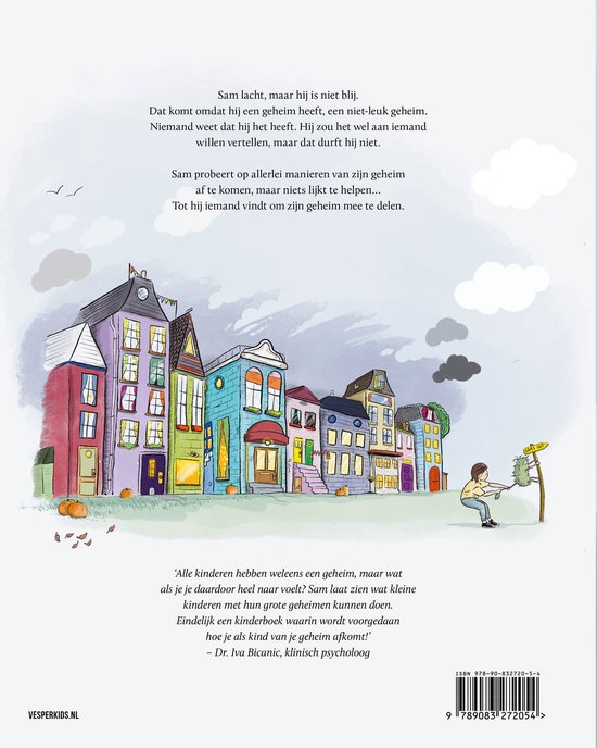 “Alle kinderen hebben weleens een geheim, maar wat als je je daardoor heel naar voelt? Sam laat zien wat kleine kinderen met hun grote geheimen kunnen doen. Eindelijk een kinderboek waarin wordt voorgedaan hoe je als kind van je geheim afkomt!”