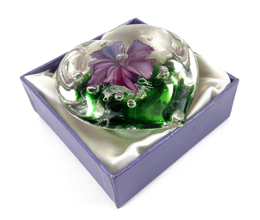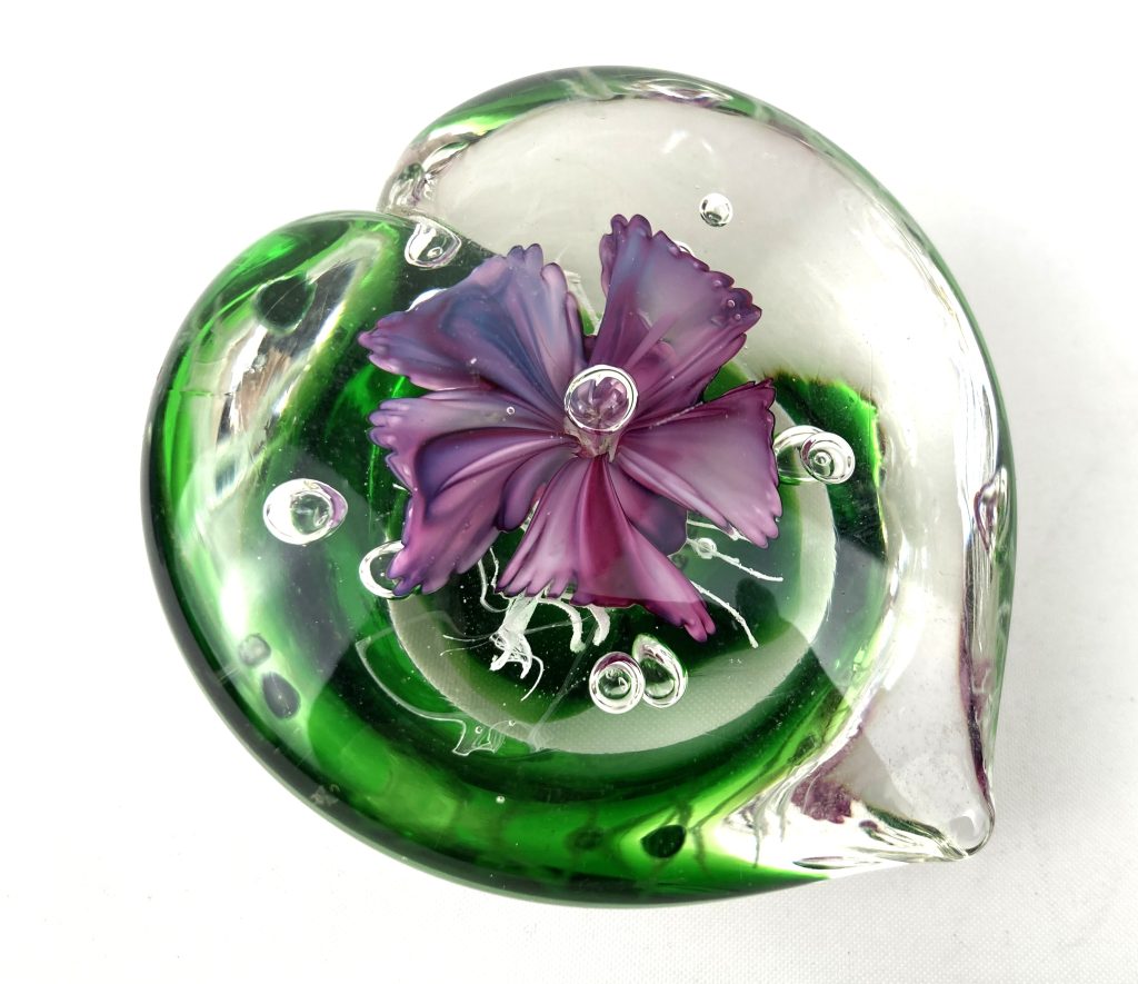 Presse-papier – Hartvormig – Glas met bloem