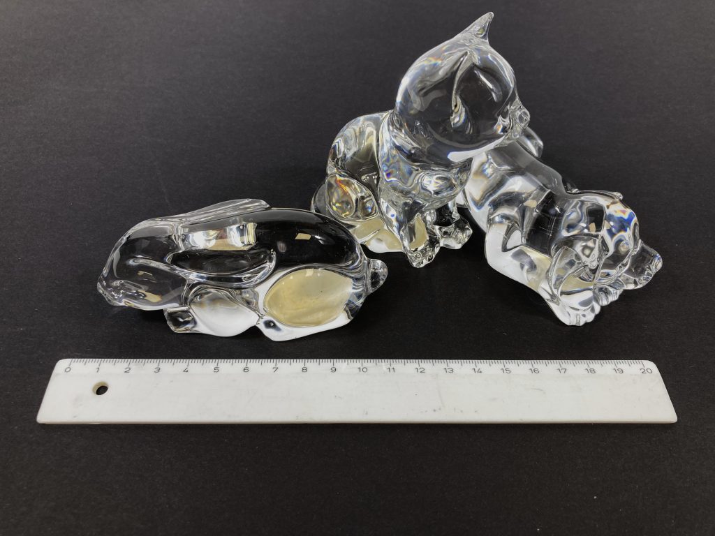 Kristallen beeldjes van een kat, hond en konijn. Gemerkt: Princess Hause Pets by Nachtmann.