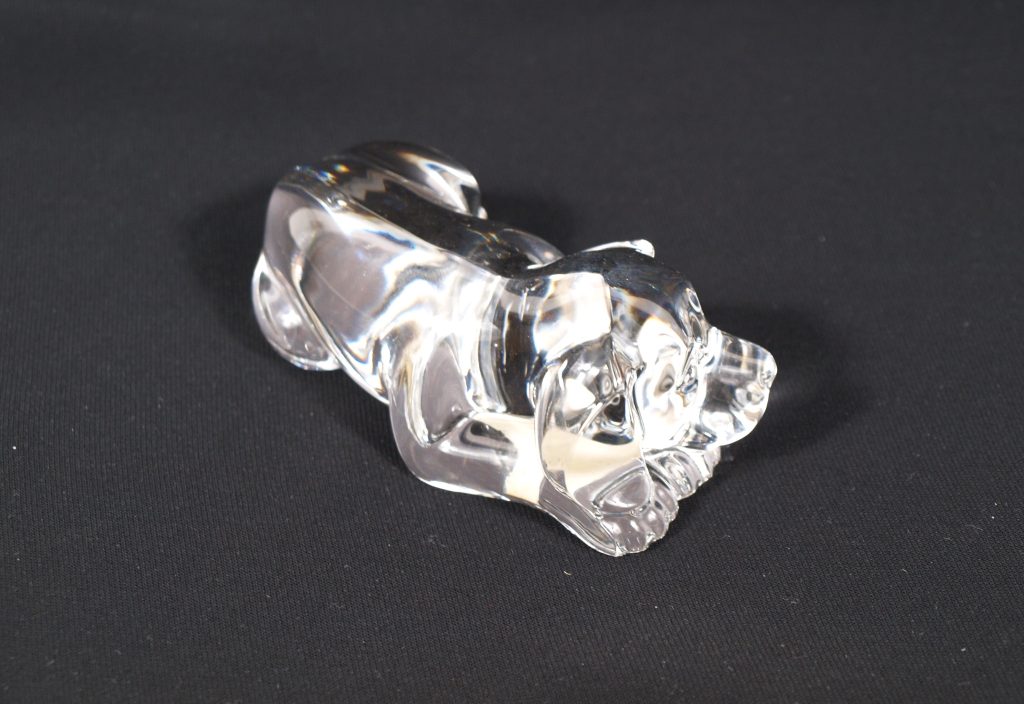 Kristallen presse-papiers in de vorm van Nachtmann in de lijn Princess house Pets. Fonkelende prisma’s maken de lijnen van de vloeiend vormgegeven beeldjes levendig, het lijkt vloeibaar maar het is kristal.