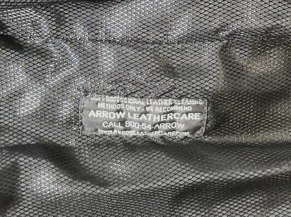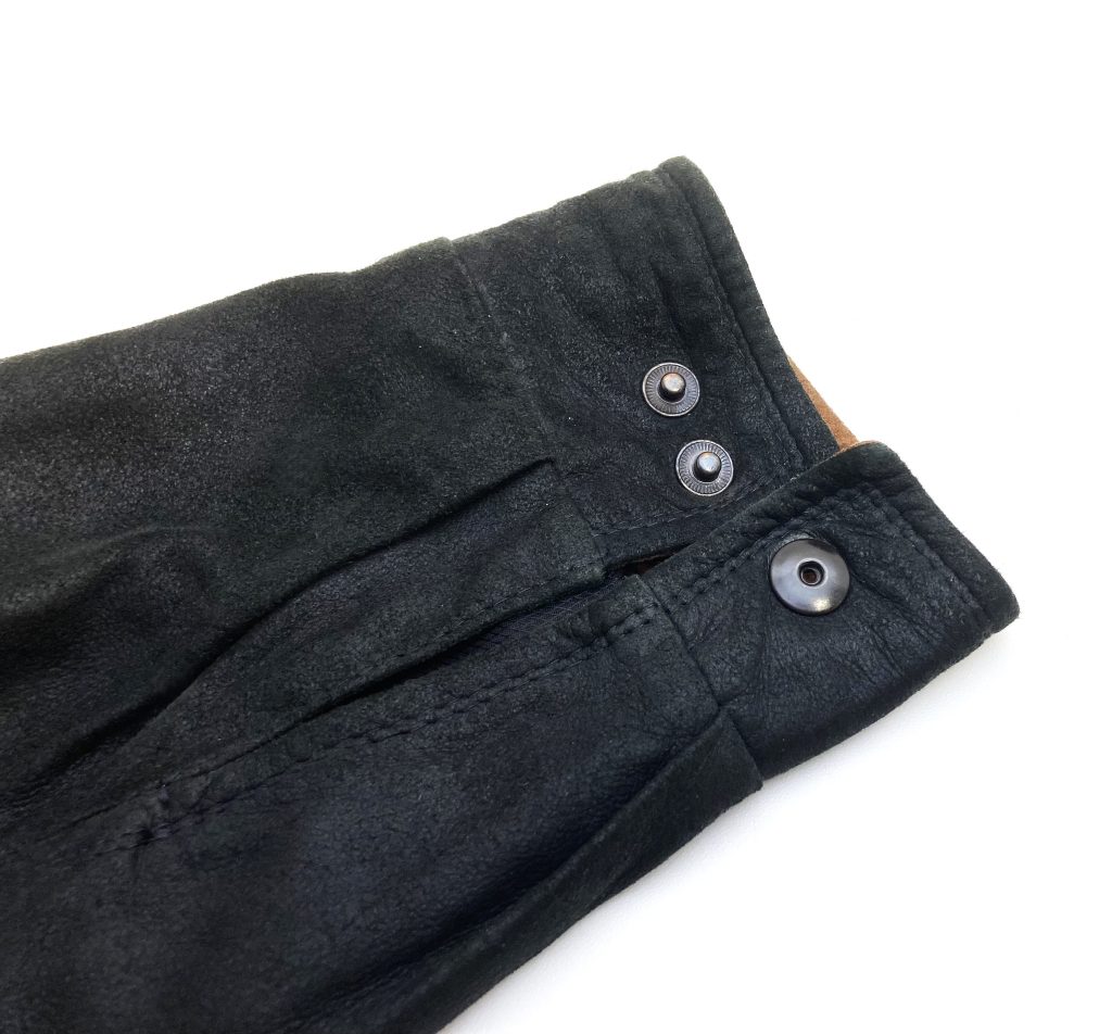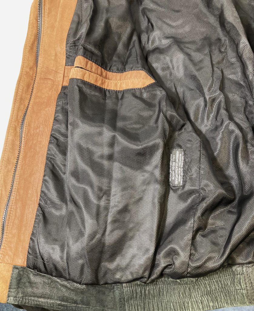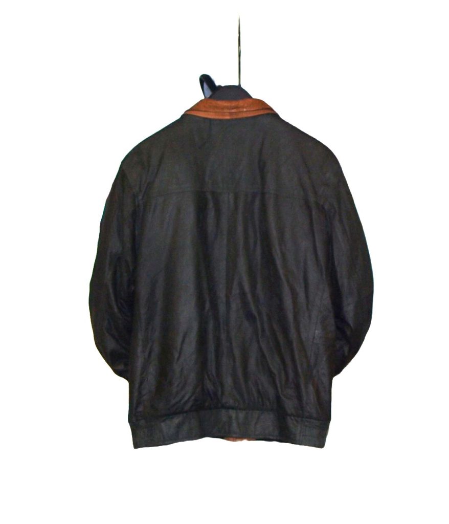 Handgemaakt in de USA. Van de allermooiste kwaliteit leer. Maat 42 (Amerikaanse maat). Met dubbele drukkers aan de manchetten, elastische tailleband, gevoerd, binnenzakken, blinde sluiting. Afmetingen: totale lengte: 70 cm., van oksel tot oksel: 62 cm., van schoudernaad tot schoudernaad: 51 cm., mouwlengte vanaf schoudernaad: 69 cm.