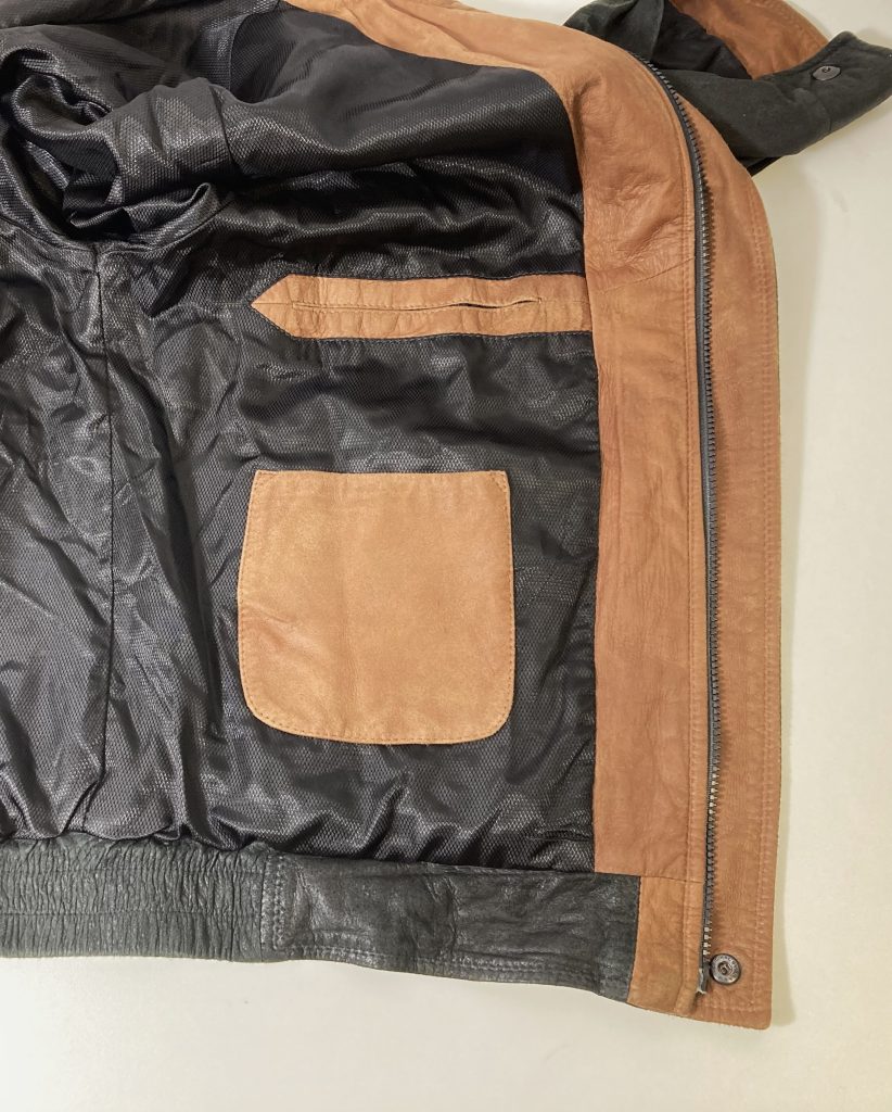 Zwart met camel lamsleren jack. Merk: Remy.