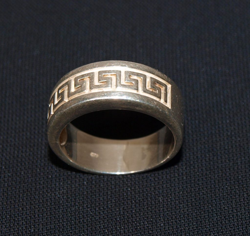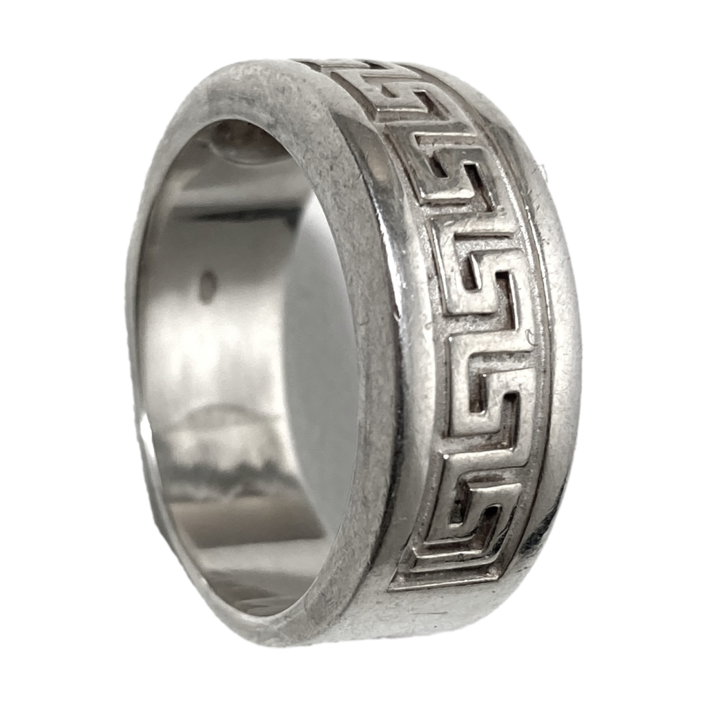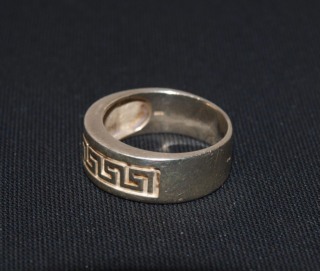 Zilveren ring met Grieks meander motief. Gemerkt.