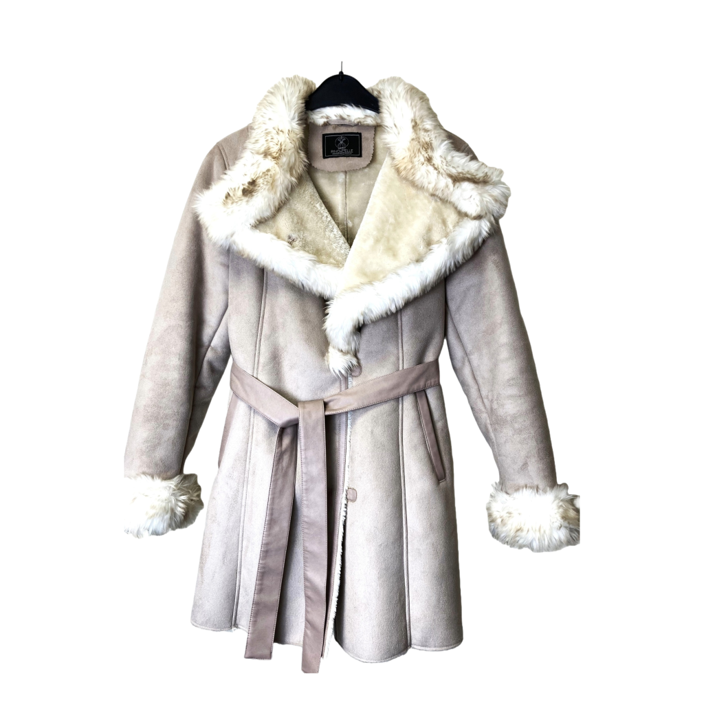 Warme dames imitatie lammy coat van Rino & Pelle in suède look. Maat 40.