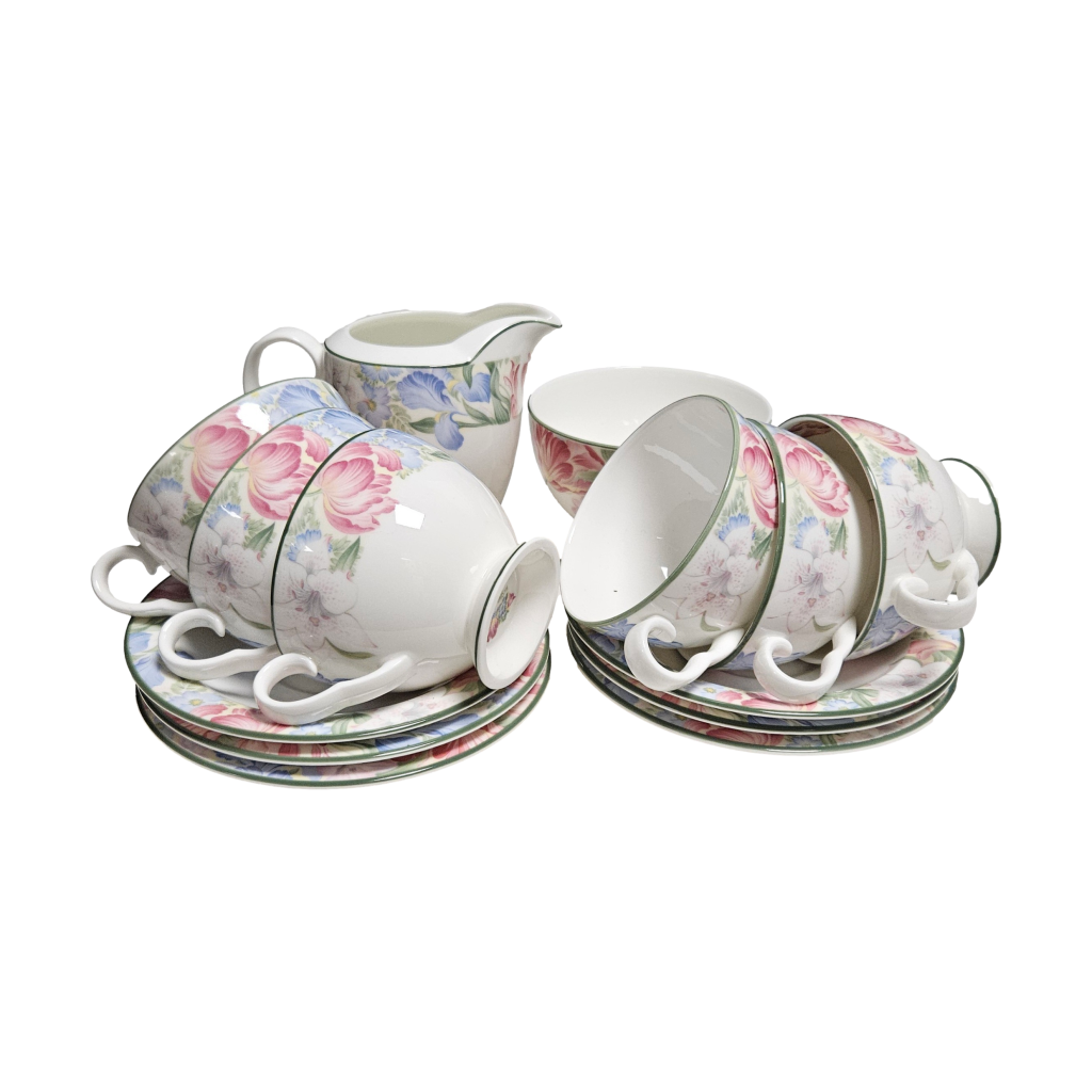 Het decor “Fonteyn” staat bekend om zijn sierlijke bloemmotieven en tijdloze charme. Dit servies is zeer geschikt voor gebruik bij thee- of koffiemomenten, maar ook prachtig als decoratief servies in een vitrinekast of op een gedekte tafel.
