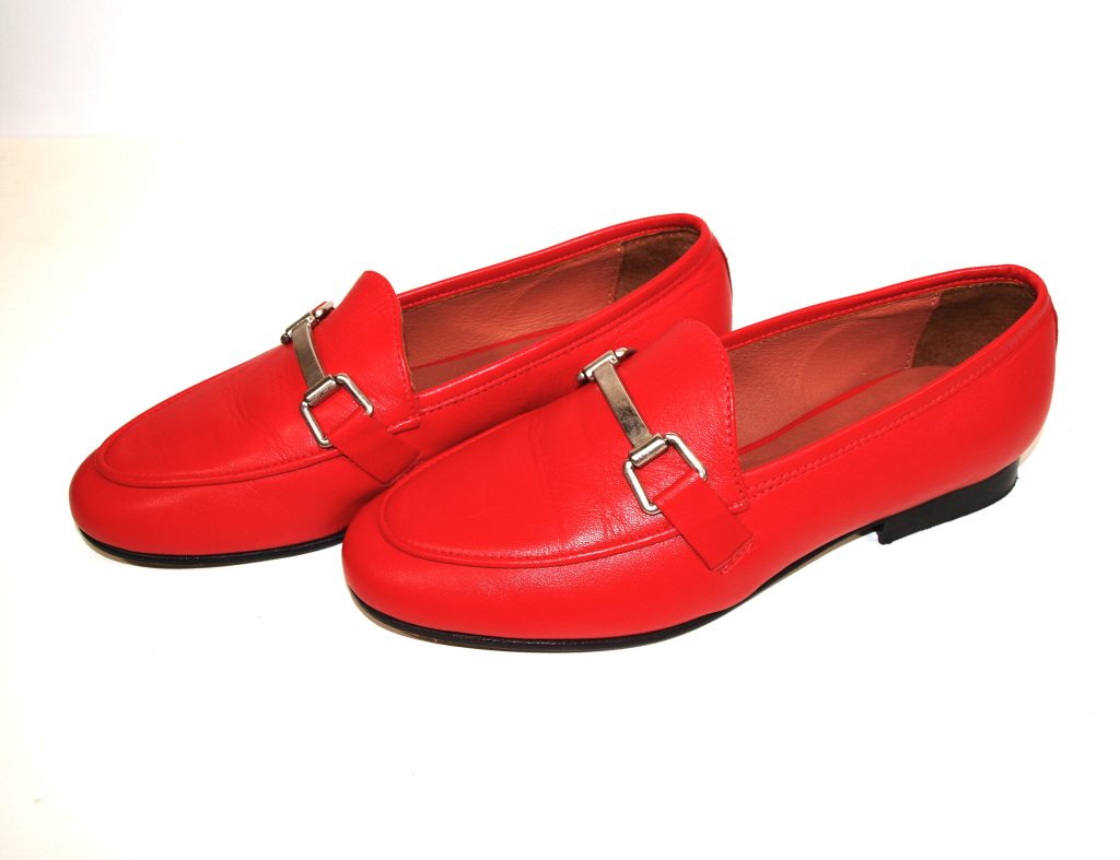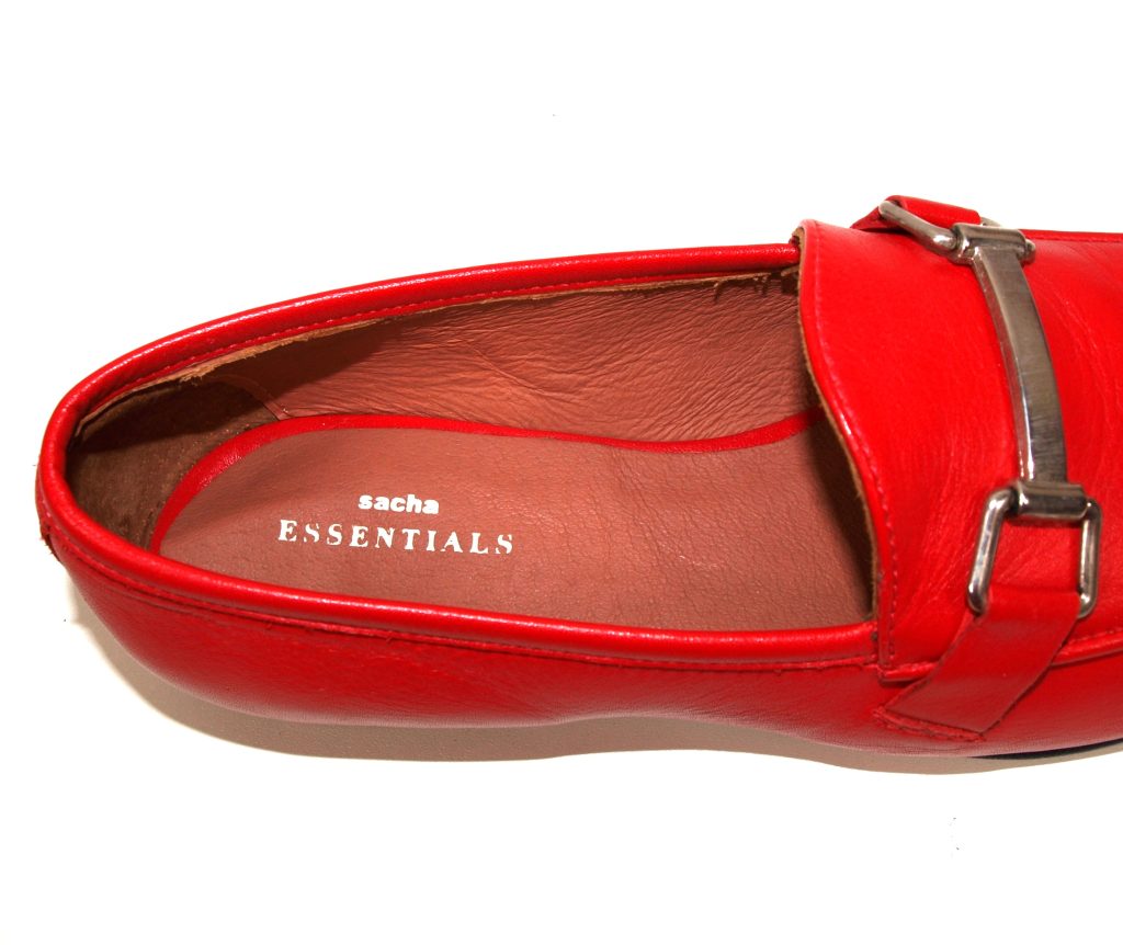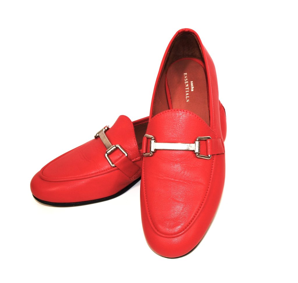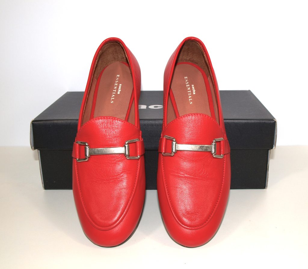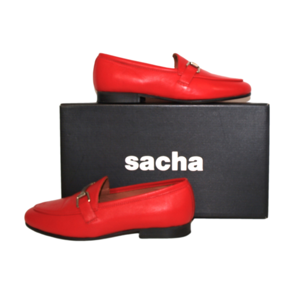 Dames loafers. Merk: Sacha. Kleur: rood. Geheel van leer. Zool: kunststof. Nieuwprijs: 89,99.