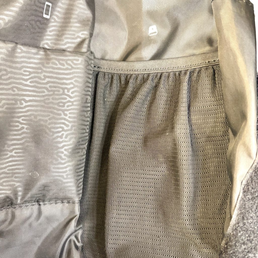 De binnenvoering, de versterkende stof aan de achterkant en de ritsen aan de binnenkant zijn gemaakt met 100% gerecycleerde petflessen, onderdeel van ons Recyclex™ Material Technology Initiative. De coating op de stoffen is gemaakt met nieuwe materialen.