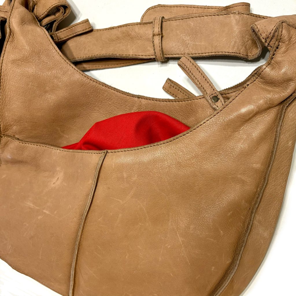 - Nieuw met kaartjes er aan. Er zitten een paar kleine vlekjes op het leer (zie foto’s)