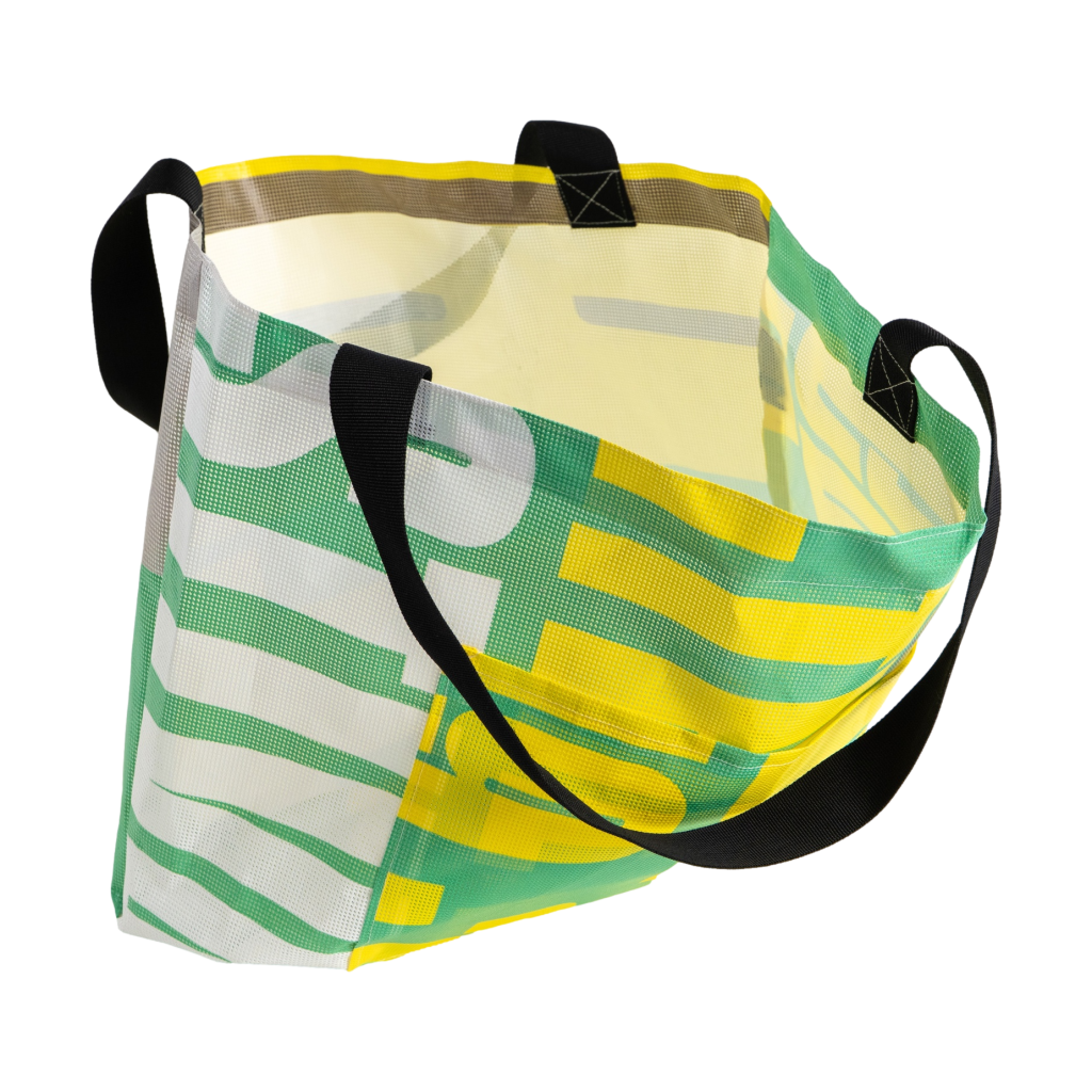 Liever iets minder transparant? De tas is er ook in bannerdoek – hetzelfde duurzame ontwerp, maar nog steviger en waterdicht. Ideaal voor nattere dagen of als sportieve, flexibele draagtas.