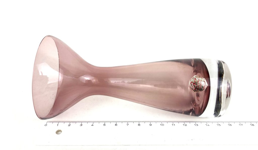 Glazen vaasje van Sea Glasbruk Kosta Sweden. Kleur: aubergine. Jaren ’70. Hoog: 15 cm. Met origineel Glasbruk sticker. In prachtige staat. Ook een fraai verzamelstuk.