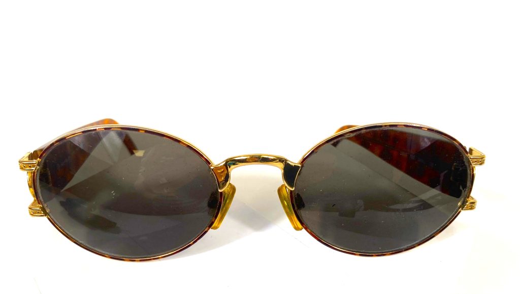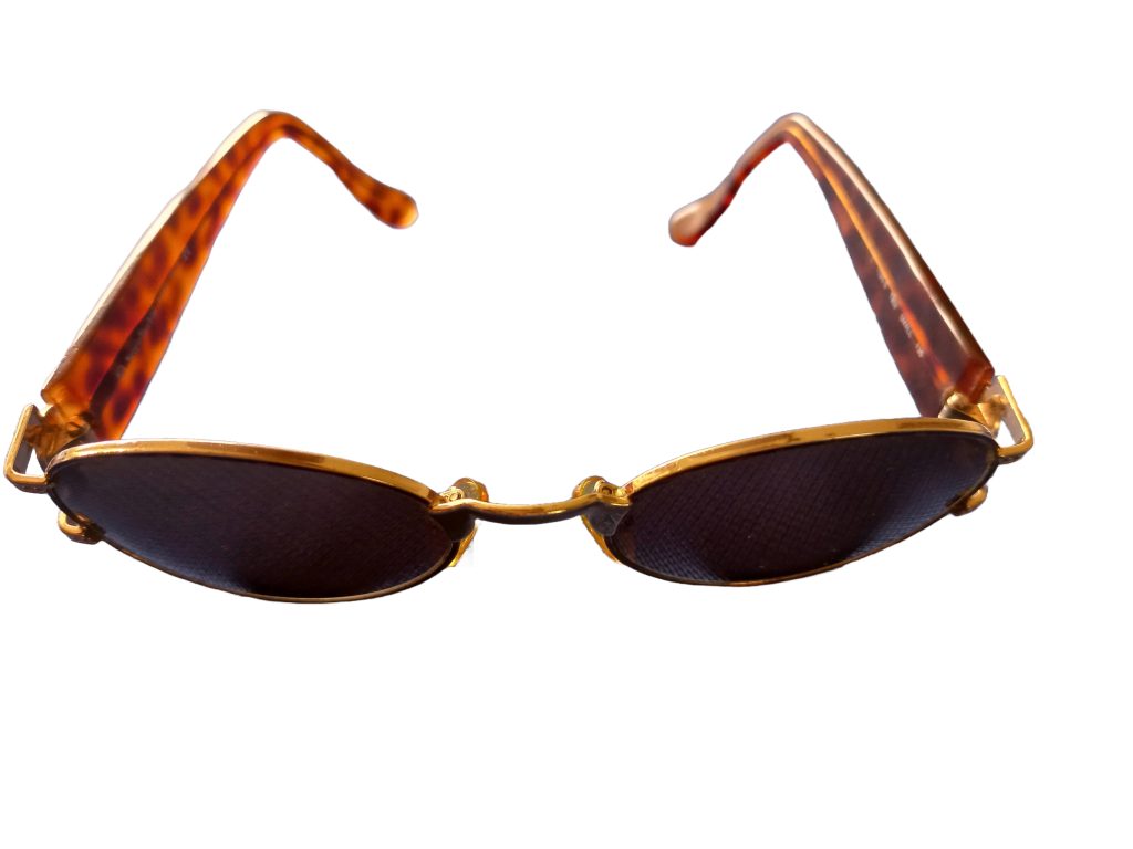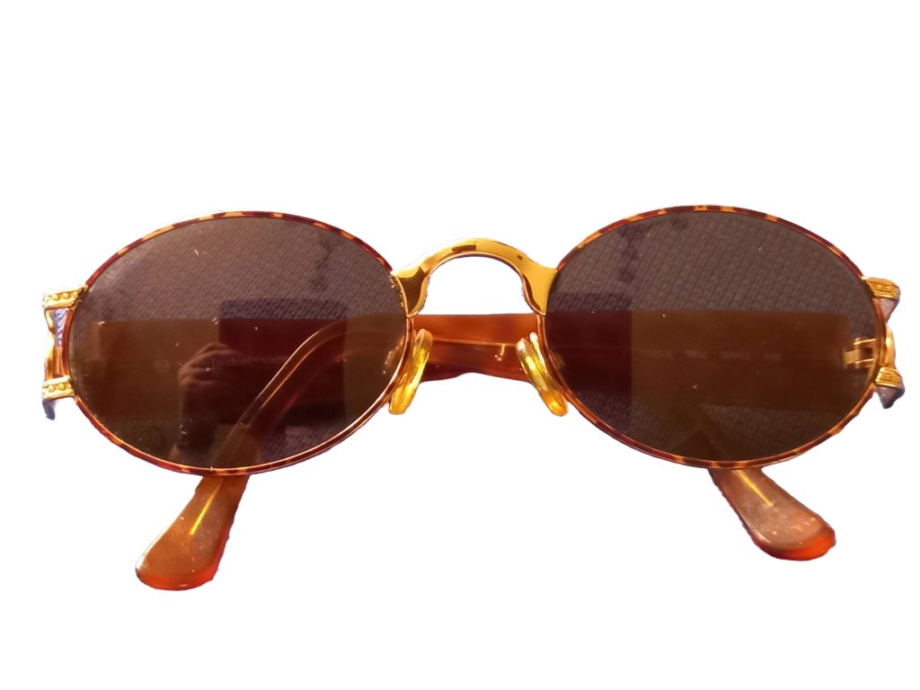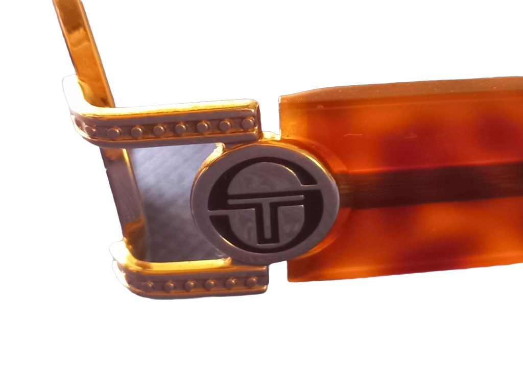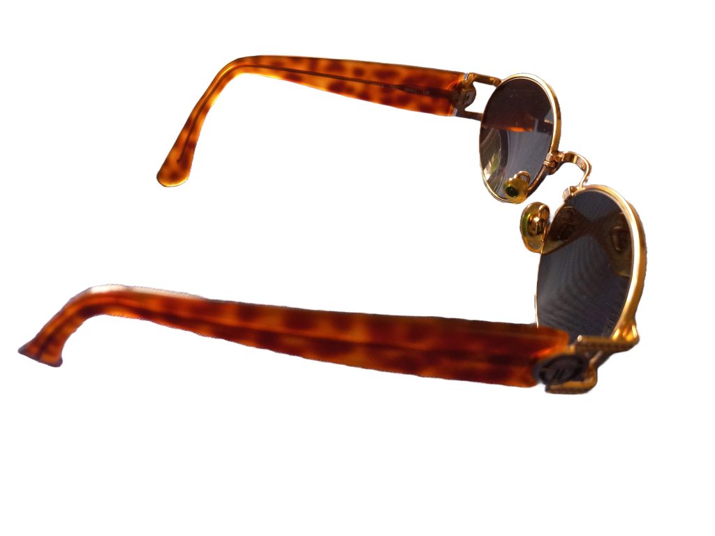Zonnebril van Sergio Tacchini in originele hoes. Maat: Small 135. Met goudkleurig montuur. Zo goed als nieuw.