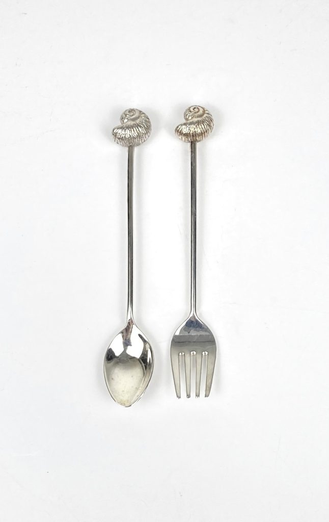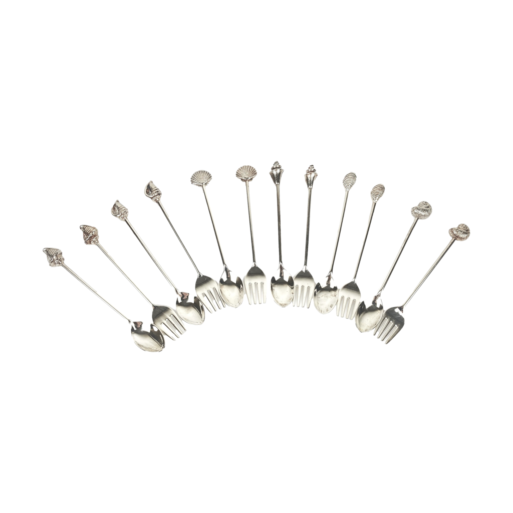 Shell lepeltjes en gebakvorkjes – Verzilverd – 12 Stuks