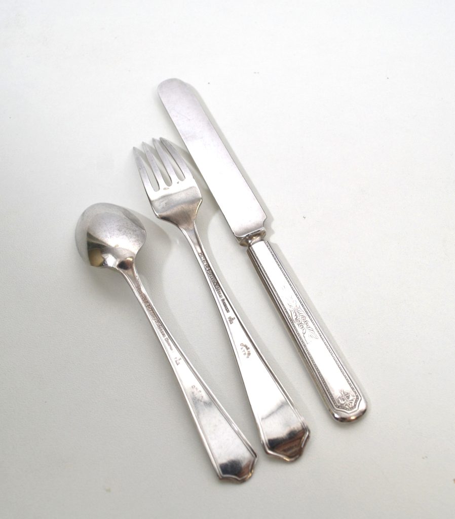 Verzilverd kinder bestek setje van Simeon L. & George Company Oneida Ltd. In goede staat.