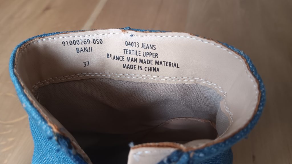 De buitenkant is van textiel en het binnenmateriaal/zool is synthetisch.