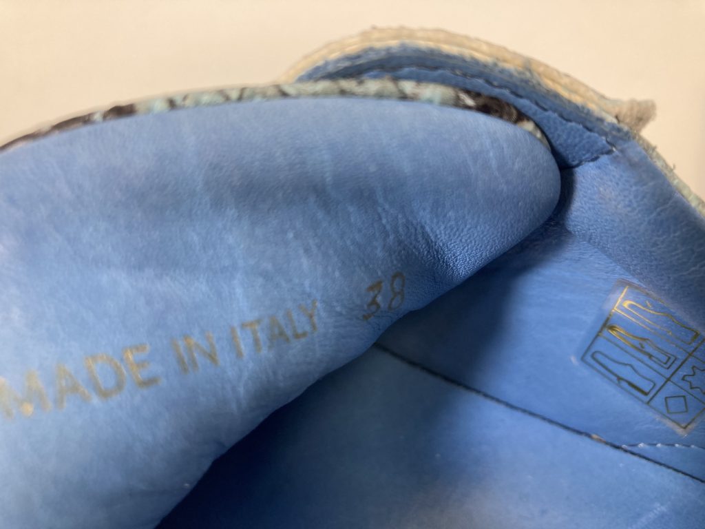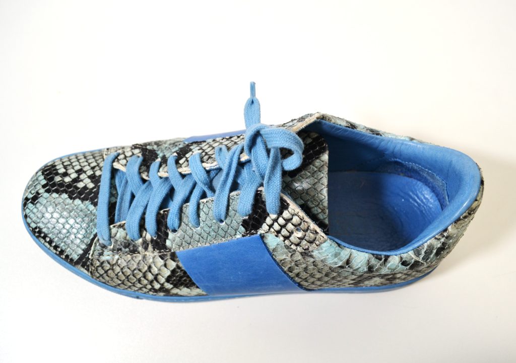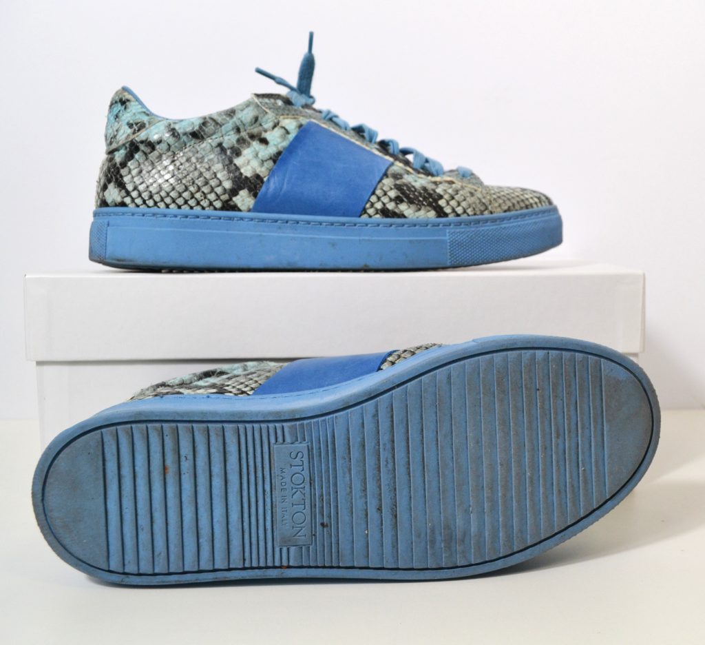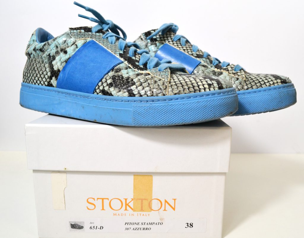 Leren sneakers in blauw met slangenprint. Merk: Stokton (made in Italy). Model: 651-D.
