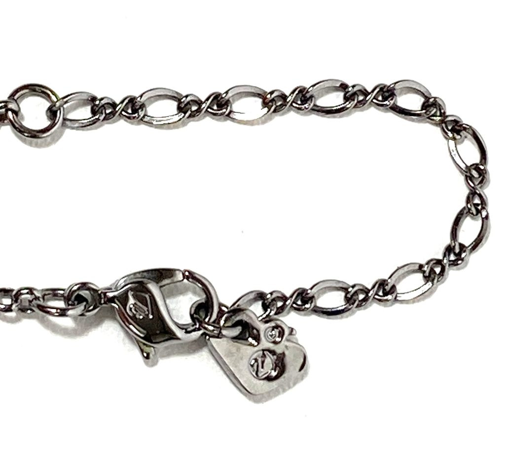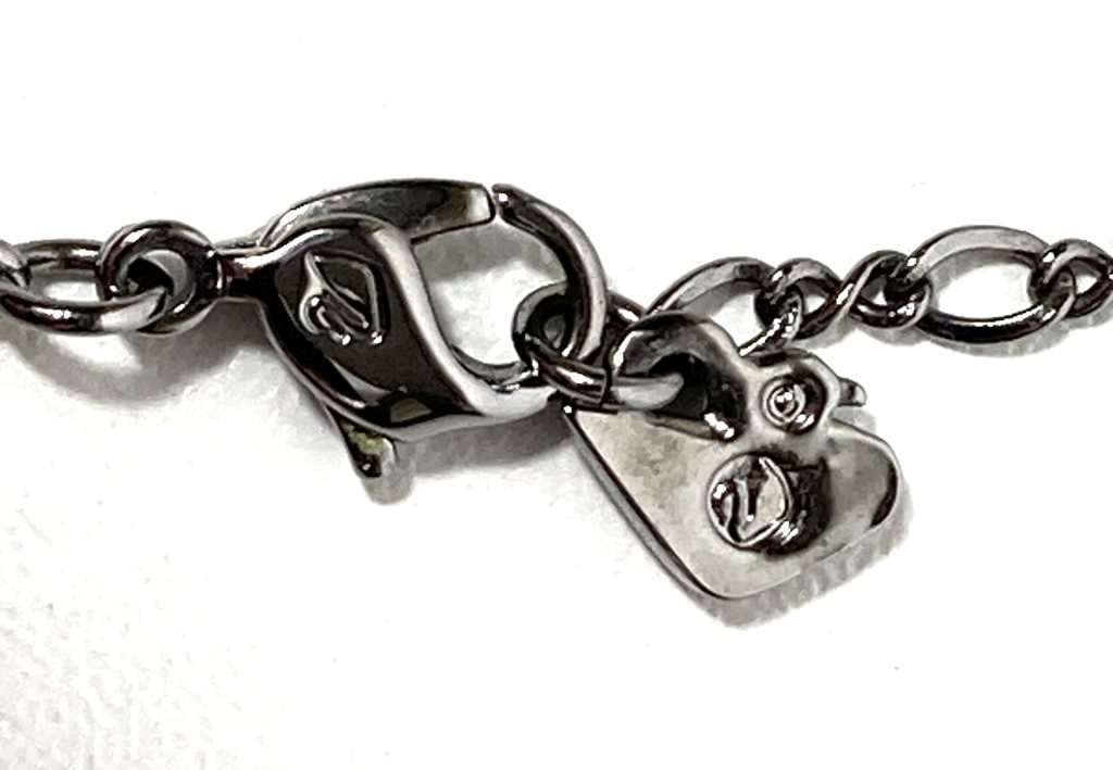 Hanger niet afneembaar. Materiaal: roest vrij staal met een laagje rhodium (rhodium plated) voor een mooie glans. Met karabijnsluiting en label. Gemerkt met fabrieksmerk en zwaantje.