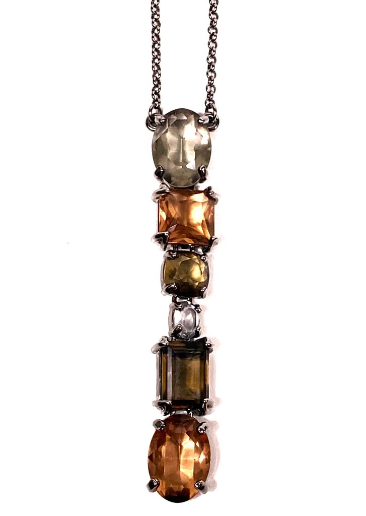 Swarovski ketting met hanger, bestaande uit 6 kristallen/natuurstenen in licht bruin, bruin en transparant.