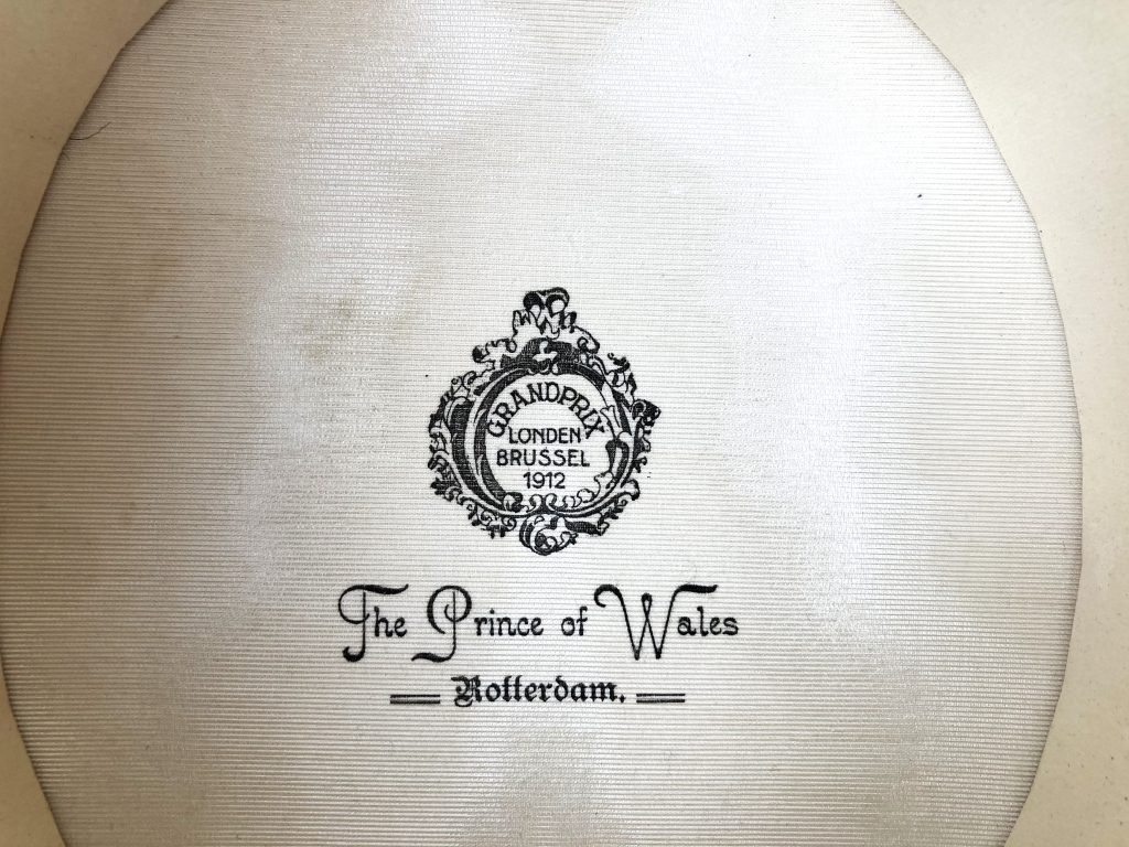 Van zwart haarvilt met zwart ripslint. Met in de hoed de text: Grandprix Londen / Brussel / 1912.
