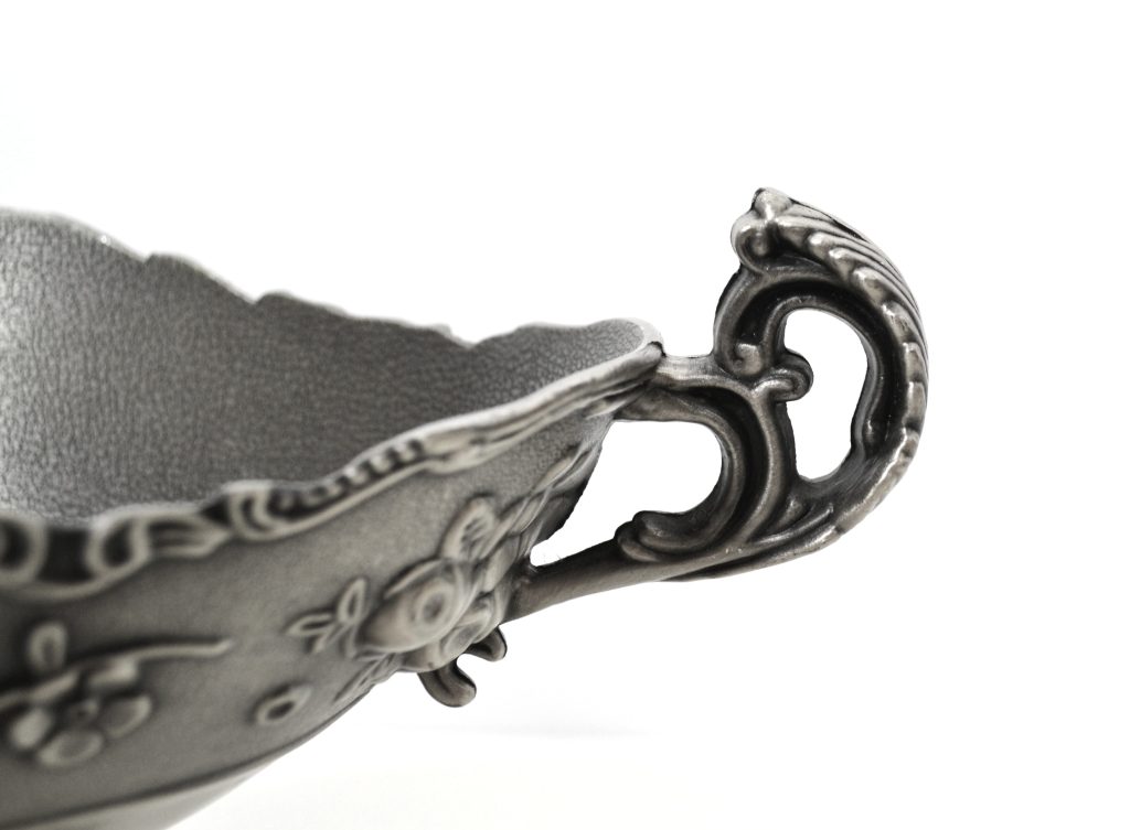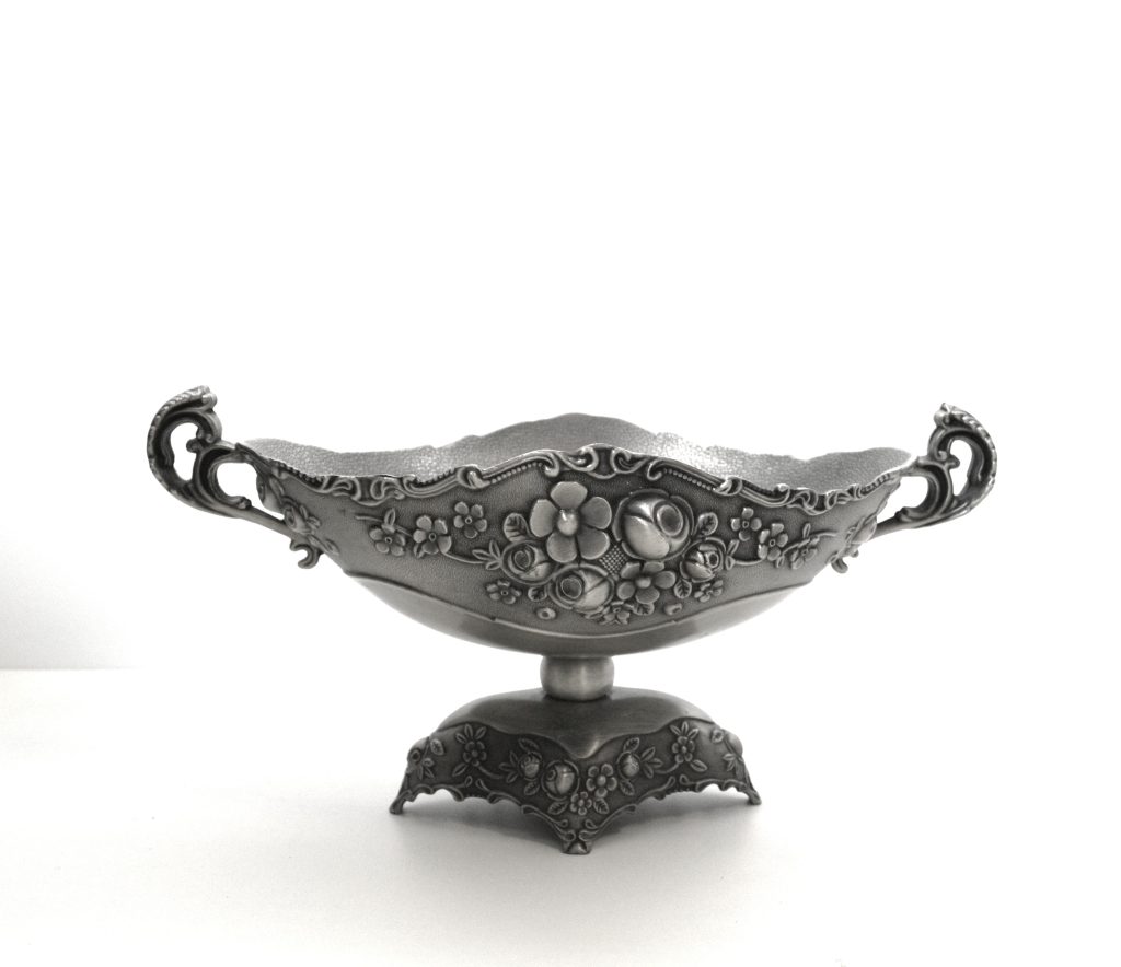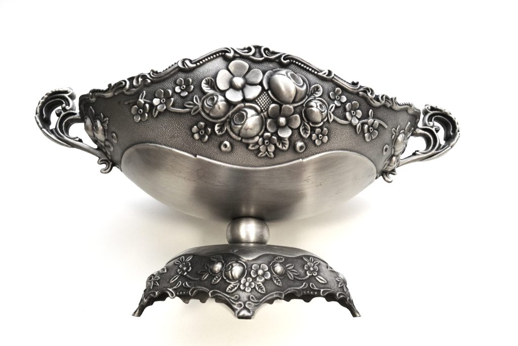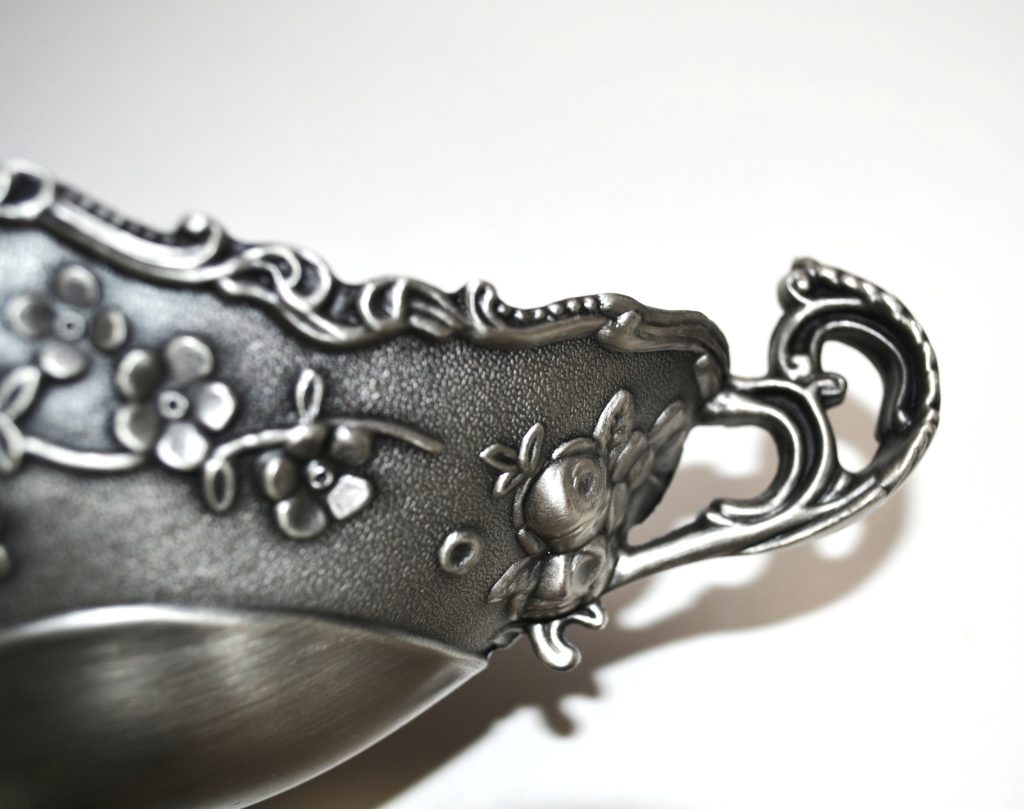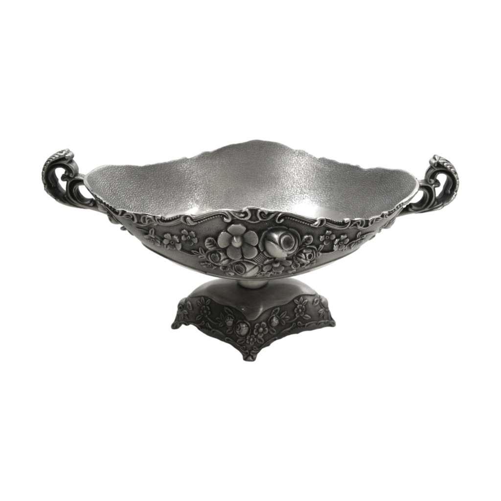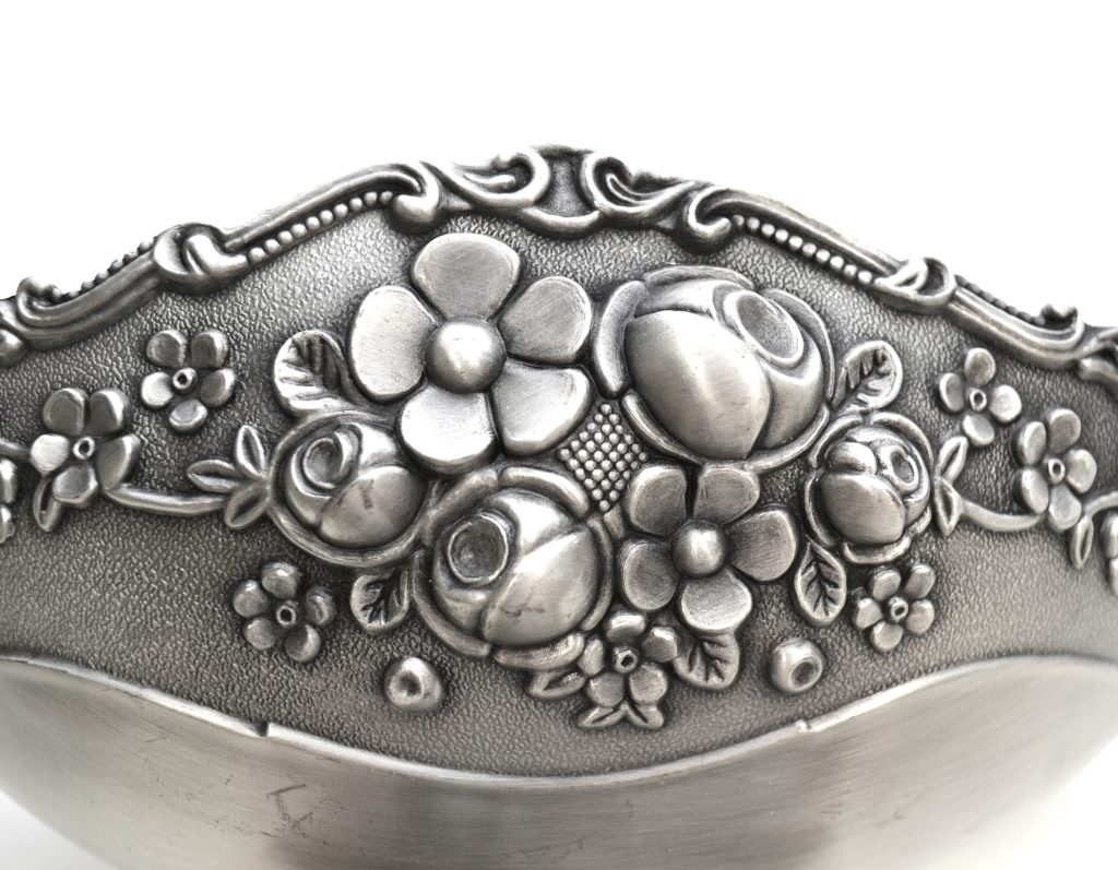 Tinnen fruitschaal met bloemmotief