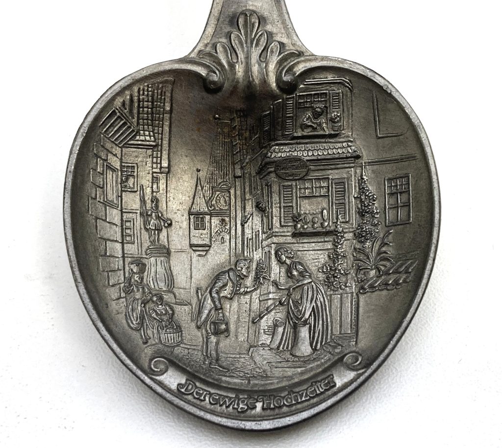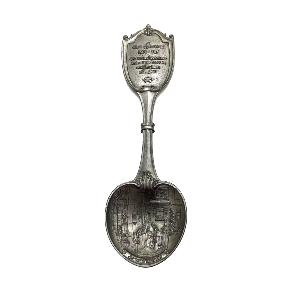 Tinnen lepel – WMF Zinn – Afbeelding door Carl Spitzweg – Der ewige Hochzeiter