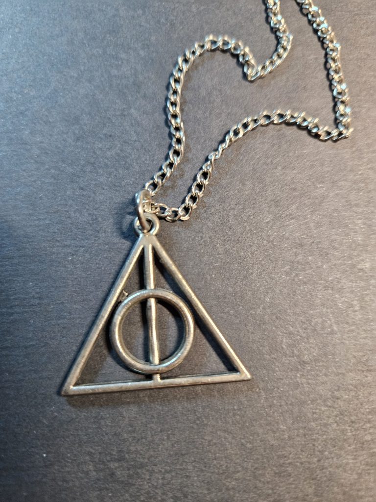 De tweede zilverkleurige ketting heeft als hanger het symbool van de Deathly Hallows – de Zegevlier, de Steen van Wederkeer en de Mantel van Onzichtbaarheid.