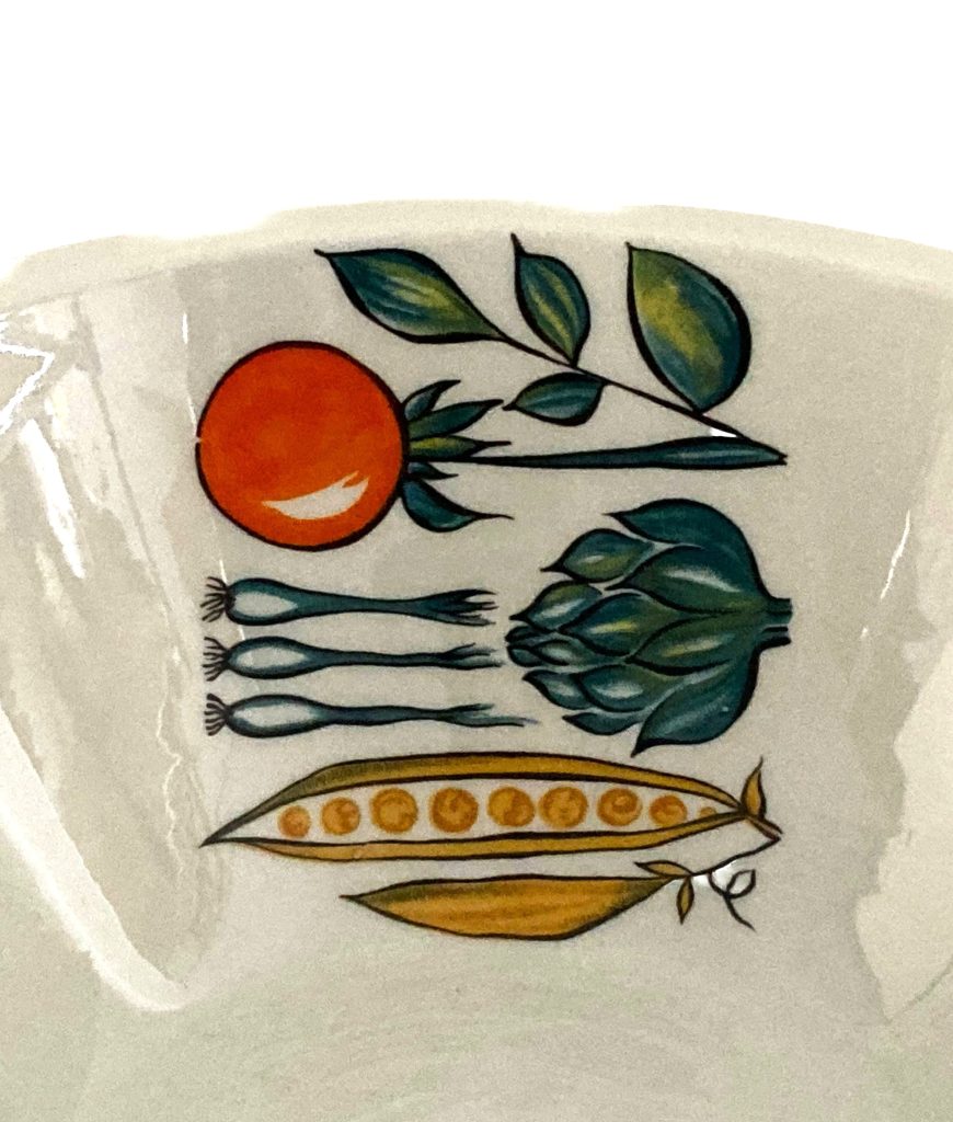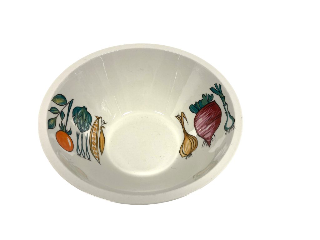 Vintage (jaren ’70) keramieken schaal van Villeroy & Boch. Décor “Primabella” (groenten). Gemerkt aan onderzijde: Villeroy & Boch Luxembourg. Diameter: 23 cm. Hoog: 9 cm. In uitstekende staat.