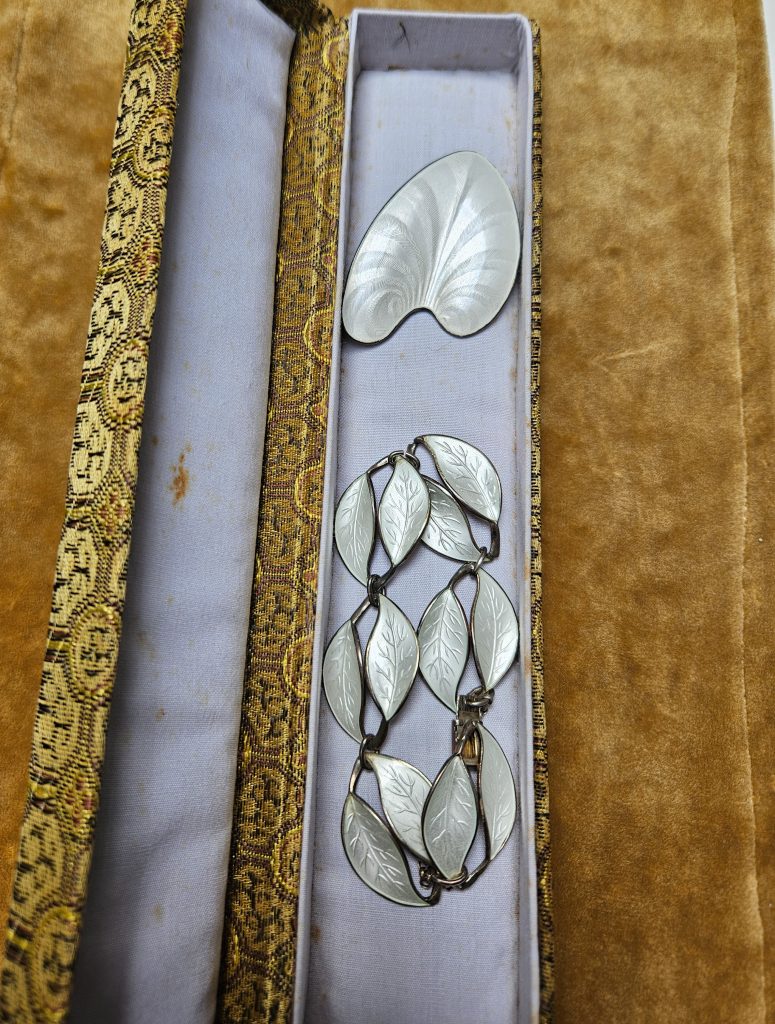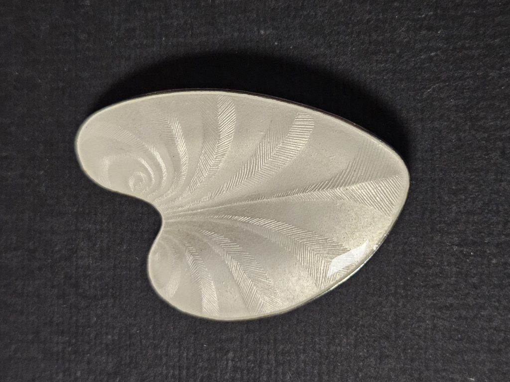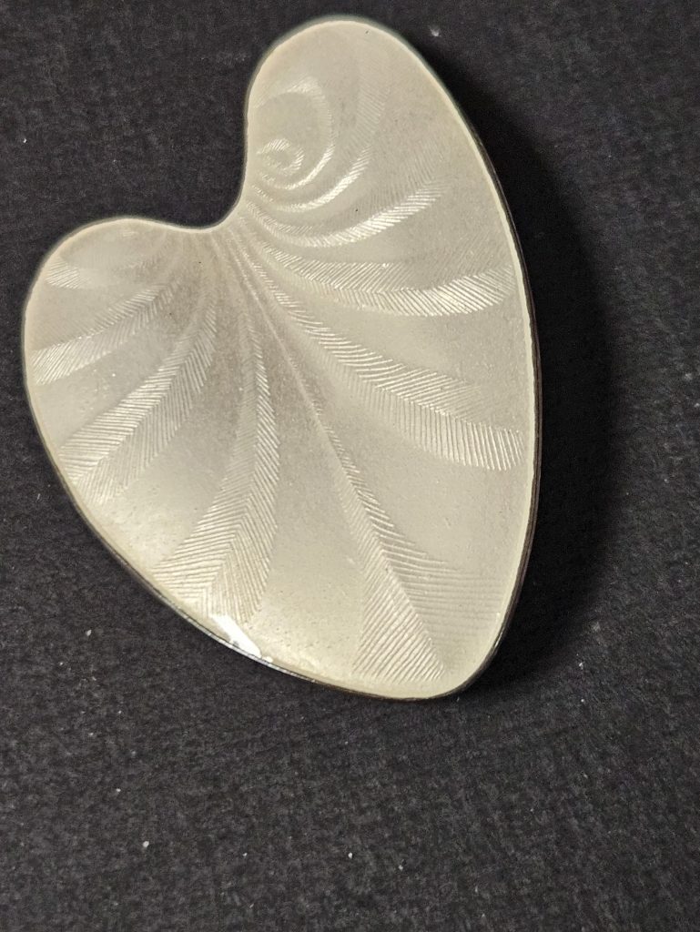 Collectorsitem. Een prachtige vintage Noorse broche van sterling zilver  en wit guilloche-emaille en sterling zilver.