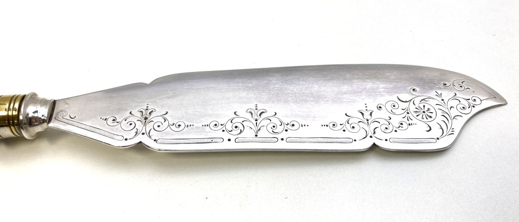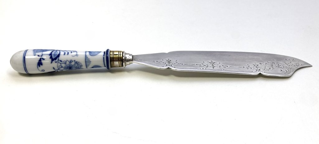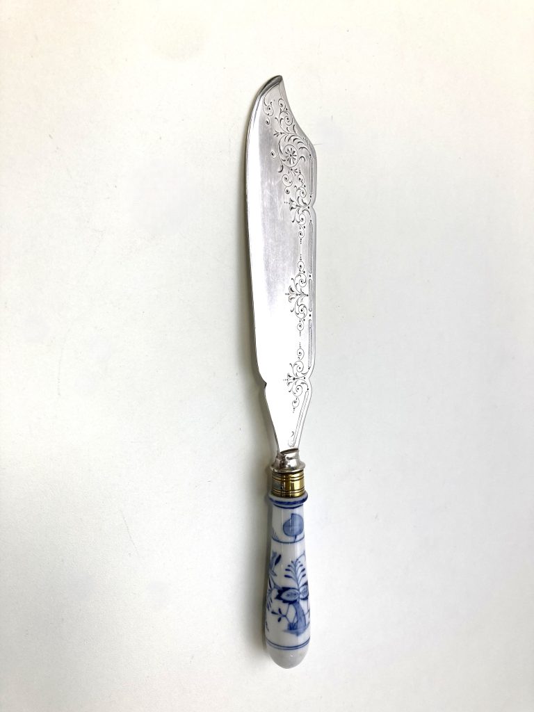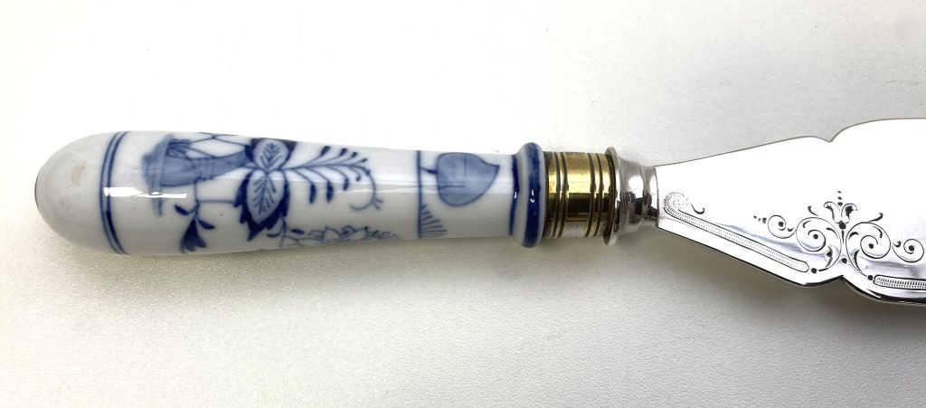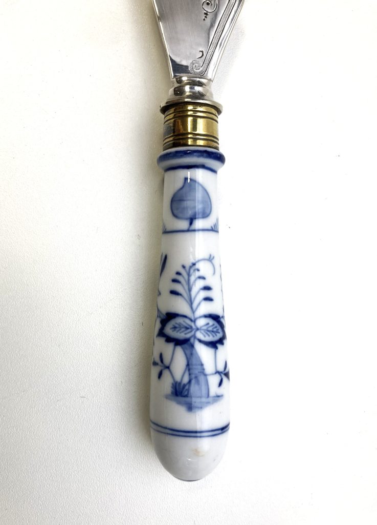 Lemmet verzilverd, heft porselein