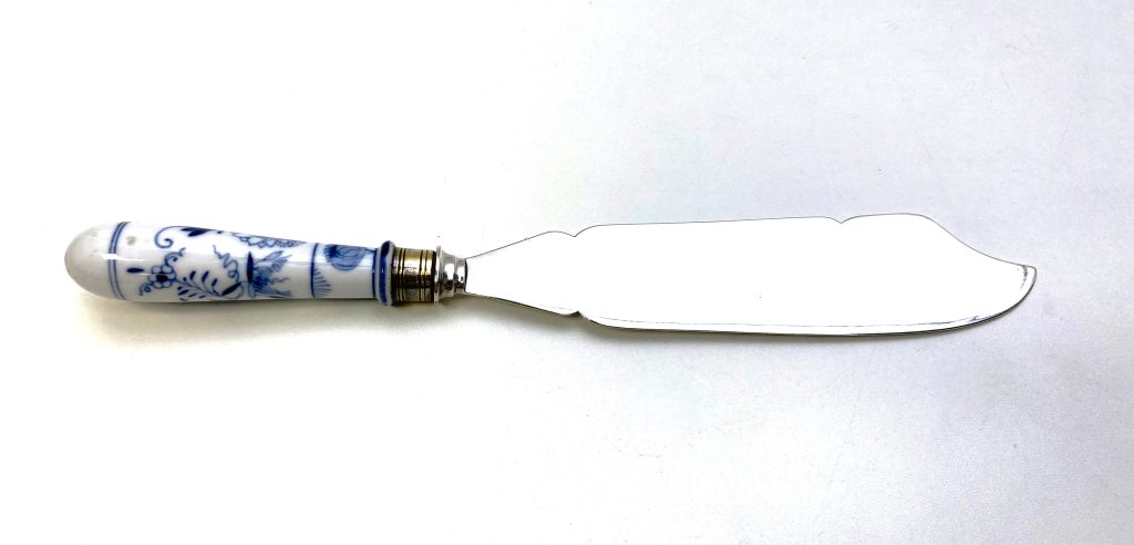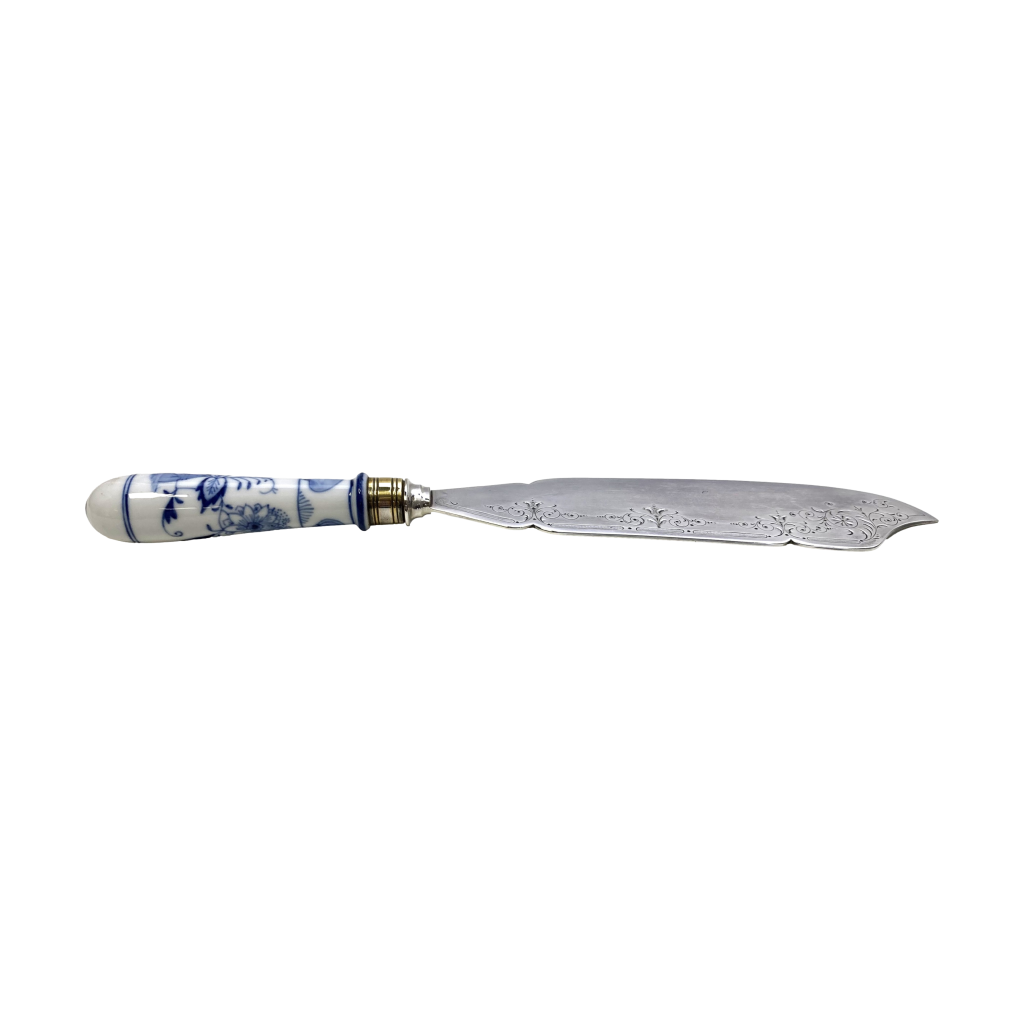 Porseleinen vis opdien mes. Décor: Zwiebelmuster (uien décor).